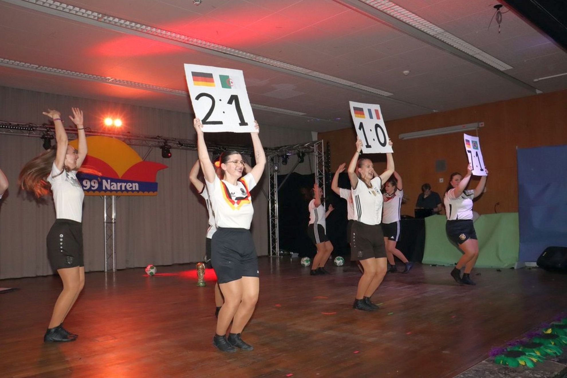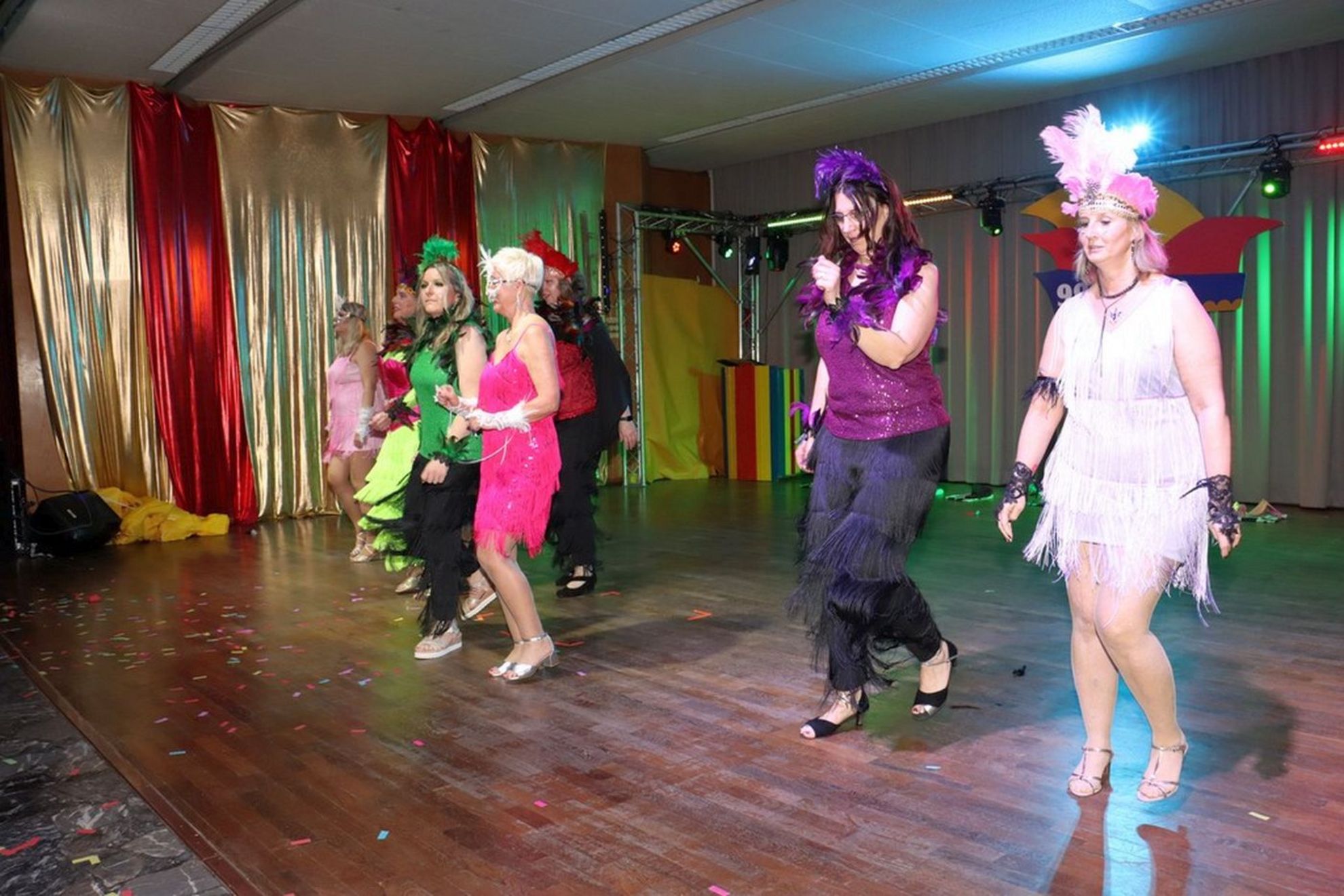 Seit ihrer Gründung richten die ’99er Narren jedes Jahr ihre große Karnevalsfeier aus – anfangs noch im kleinen Übungsraum der Feuerwehr, später in Gaststätten in Großgoltern und Nordgoltern. Bis 2020 wurde ganze 17 Mal in der Aula der Adolf-Grimme-Schule gefeiert. Nach der coronabedingten Pause folgte 2024 ein echtes Highlight: Zum 25-jährigen Jubiläum ging es ganz groß in den Zechensaal.