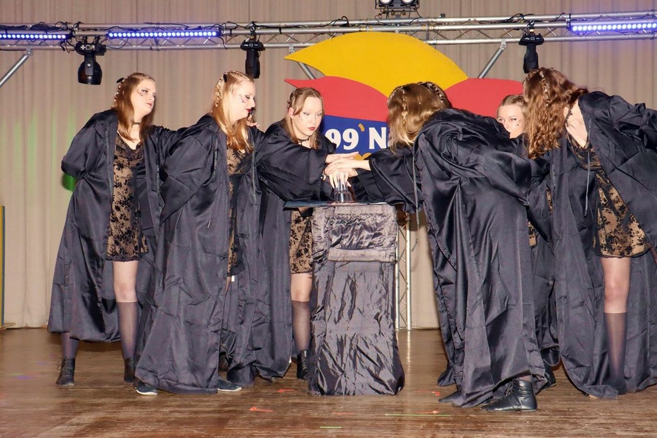 Die ausverkaufte Halle wurde von Wolfgang Pardey und Andreas Bröder begrüßt. Moderiert wurde die Karnevalsfeier erneut von Holger Heine. Auf dem Programm standen dann die Tanzmariechen aus Ricklingen und Rainer Thon als „Der Therapeut“. Besonders stolz zeigte sich der Vorsitzende Pardey über Mina Bröder und Emma Zimmer. Die beiden jungen Tänzerinnen kommen aus dem Verein und standen mit ihren eigenen Tanznummern zum ersten Mal auf der Bühne. „Sogar ihre Kostüme haben sie selbst gestaltet“, so Pardey zum Nachwuchs der ’99er Narren. Für Begeisterung sorgten auch die Tanzgruppe aus Ricklingen, die Garde aus dem Partnerverein aus Apelern.