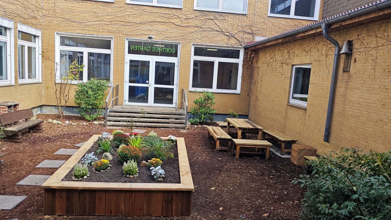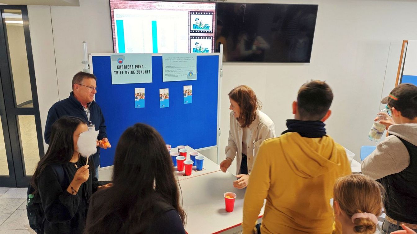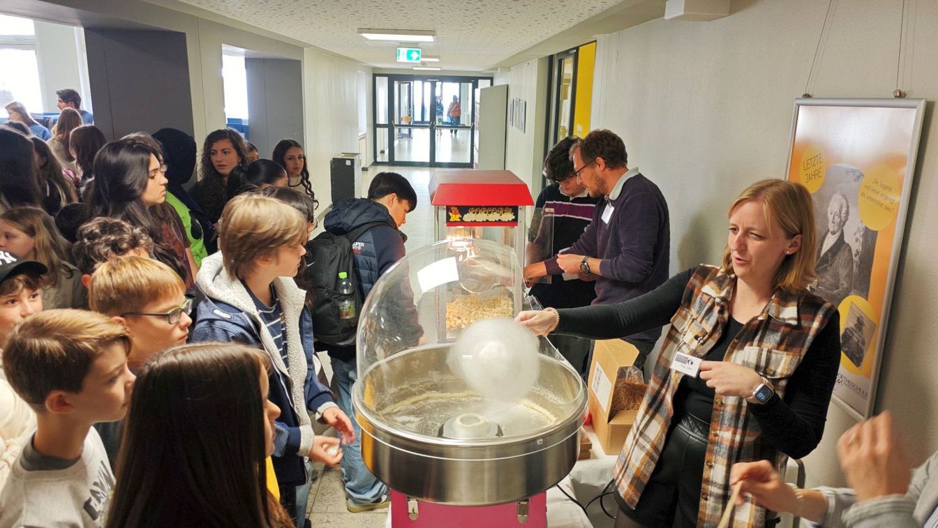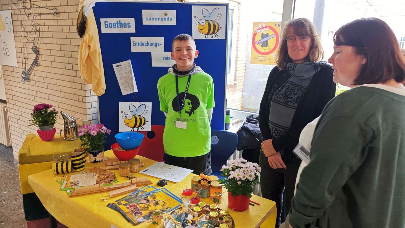 Während in der Schule der Popcorn-Duft durch die Räume zog und Schüler Kuchen verteilten, gab es in den Sporthallen und auf dem Schulhof Bewegungsaktionen. Eine Schülergruppe drehte einen Film und interviewte dafür auch Gesamtschuldirektor René Ehrhardt. „Wir haben auch einen eigenen Honig kreiert, der beim Festakt am Donnerstag probiert werden darf“, kündigte Bohn an. „Außerdem haben Schüler den Schulgarten ‚Goethes Garten‘ neu gestaltet.“