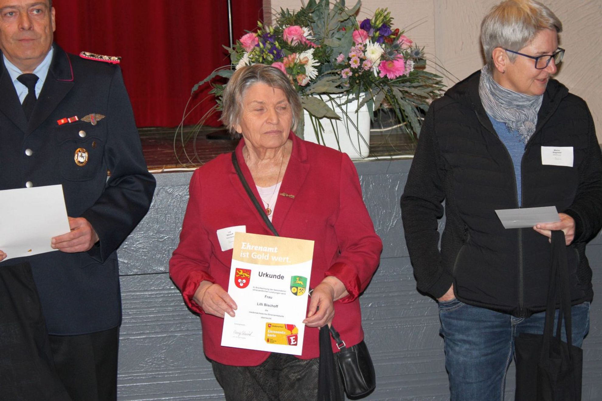 Ausgezeichnet wurden Lilli Bischof für ihr Engagement bei der Kinderhilfe Ukraine e.V., Jule Röhrkaste von der Evangelischen Jugend Ronnenberg sowie Heinz Oppermann und Melanie Pihali, die sich seit vielen Jahren im Tierschutzverein Barsinghausen und Umgebung e.V. engagiert. Ebenfalls geehrt wurden Holger Juhl, Jonas Möritz und Michael Bruns, die in der Freiwilligen Feuerwehr aktiv ist. Für sein ehrenamtliches Wirken erhielten außerdem Günther Werner vom Siedlerbund die Ehrenamtskarte. Marion Siegmeier erhielt für ihr Engagement beim DCCV e.V. eine Ehrenamtskarten. Weiter erhielten Alfred Schön und Edith Zgrzebski, Ev.-luth. Gesamtkirchengemeinde Barsinghausen die Karte. Chiara Bierbrauer (Juleica) erhielt ebenfalls eine Ehrenamtskarte.