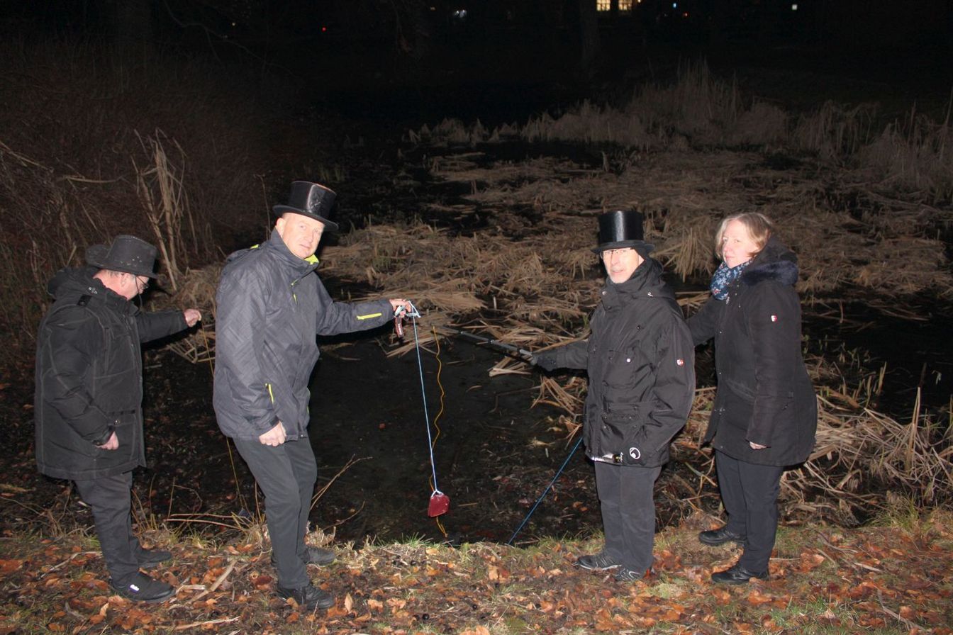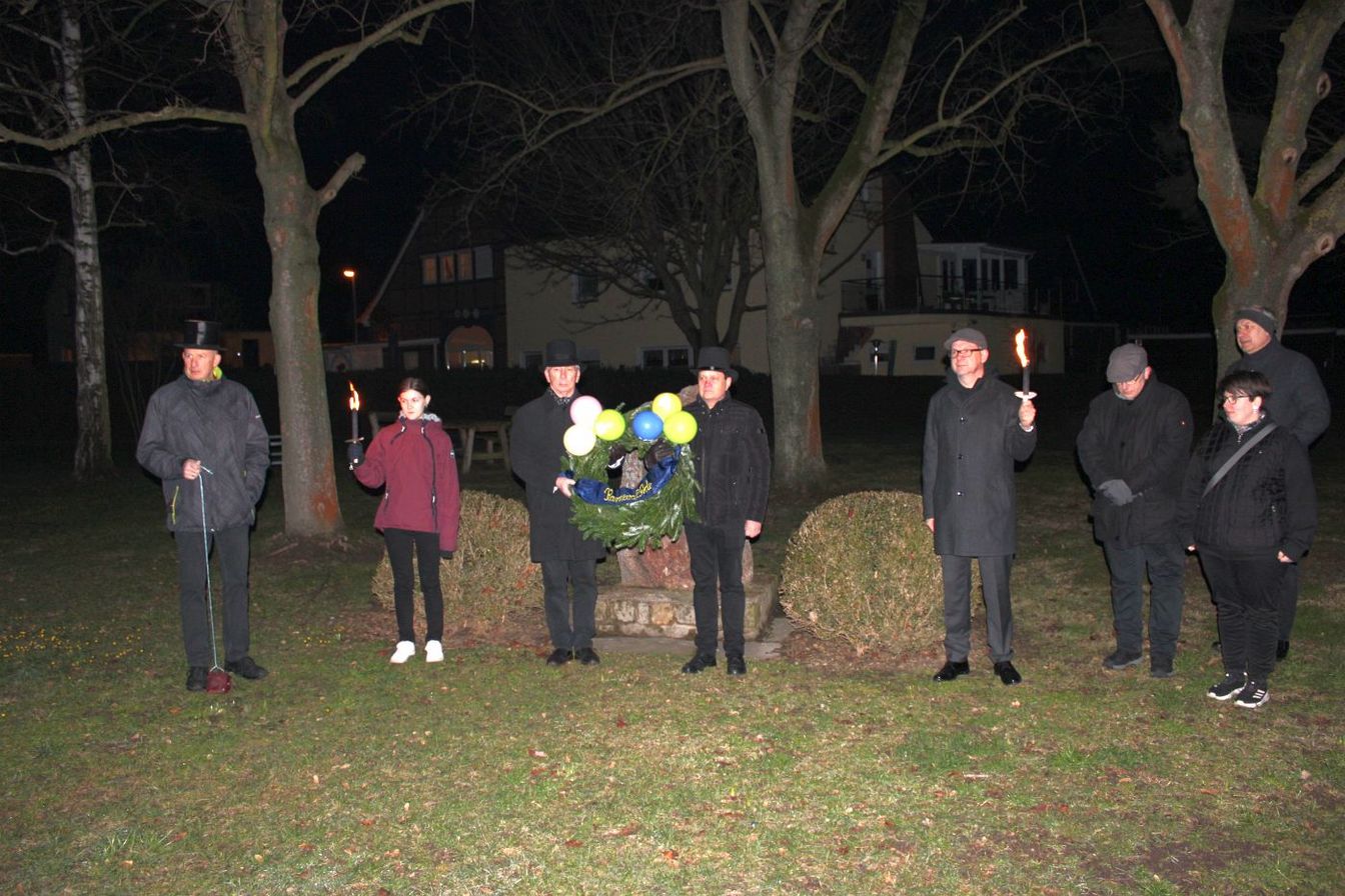 Zum festen Brauchtum gehörte daher zunächst das symbolische Auswaschen der Geldbörsen im von Heimburg’schen Hausgraben am Rittergut – ein augenzwinkernder Hinweis auf die närrischen Ausgaben der vergangenen Wochen. Anschließend wurde am Eckerder Heimatstein ein Schleifenkranz niedergelegt – als Zeichen des Abschieds und in Erinnerung an die zurückliegende Session.