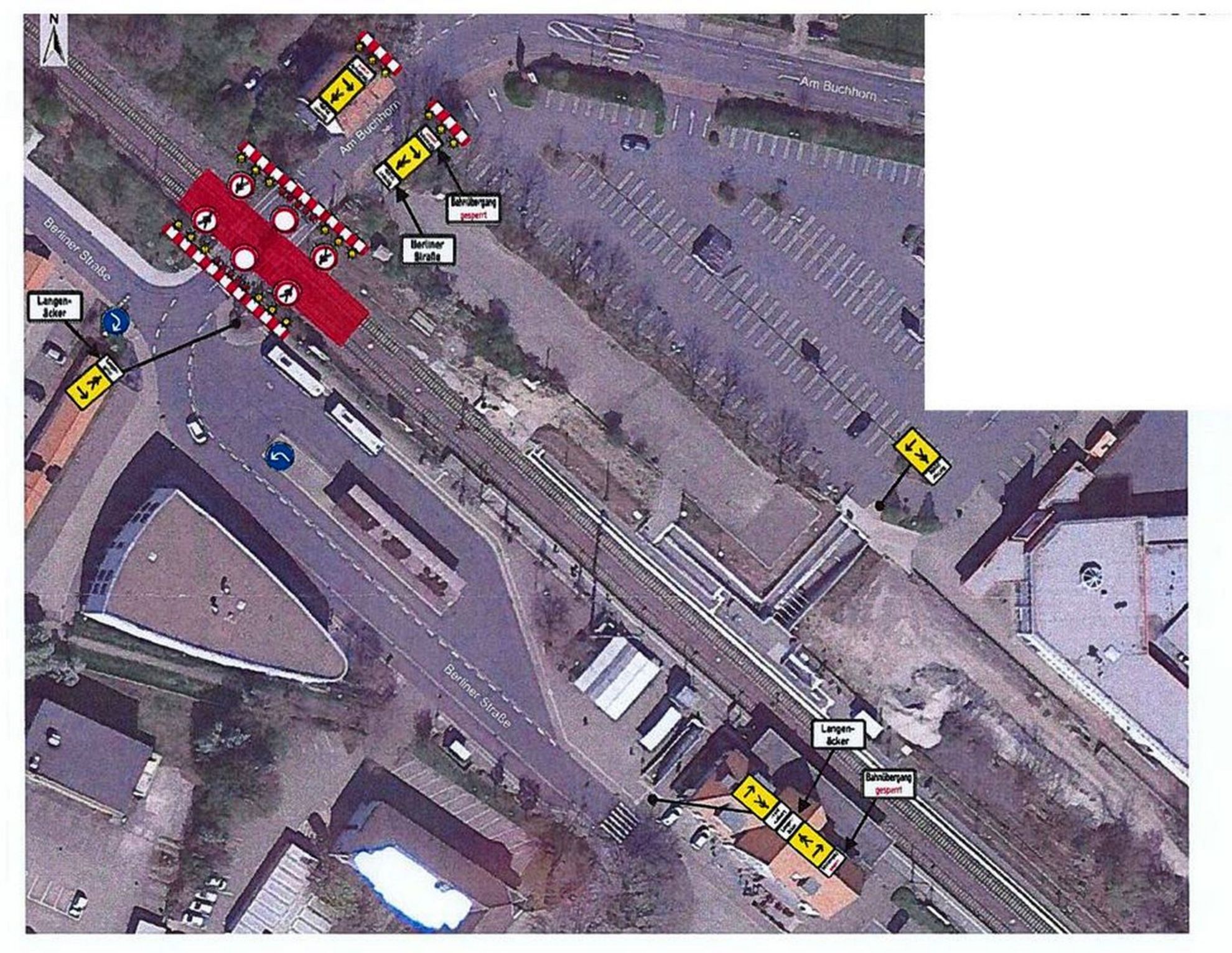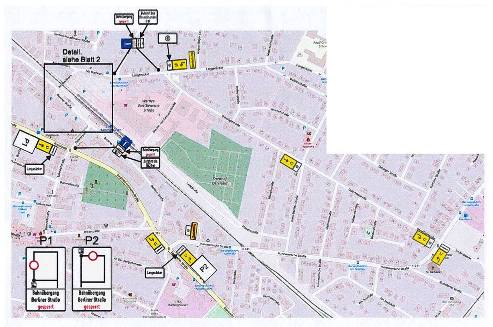 Die Umleitung für den Straßenverkehr erfolgt über die Poststraße - Siegfried-Lehmann-Straße – Hannoversche Straße – Osterfeldstraße – Langenäcker und umgekehrt. Fußgänger werden gebeten die im Bahnhof befindliche Unterführung zu nutzen.