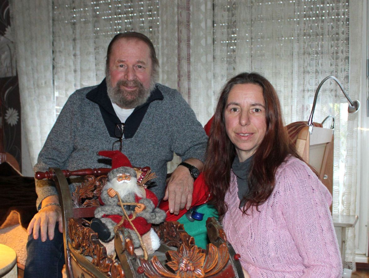 Seit etwa fünf Jahren begleitet ihn eine Weihnachtselfe: Seine Stieftochter Sandra Höger (47). „Ich habe ihn ja immer gefahren und im Auto gewartet. Das war mir irgendwann zu langweilig“, erzählt sie. Also schneiderte sie sich selbst ein Elfenkostüm und unterstützt ihn seitdem tatkräftig.