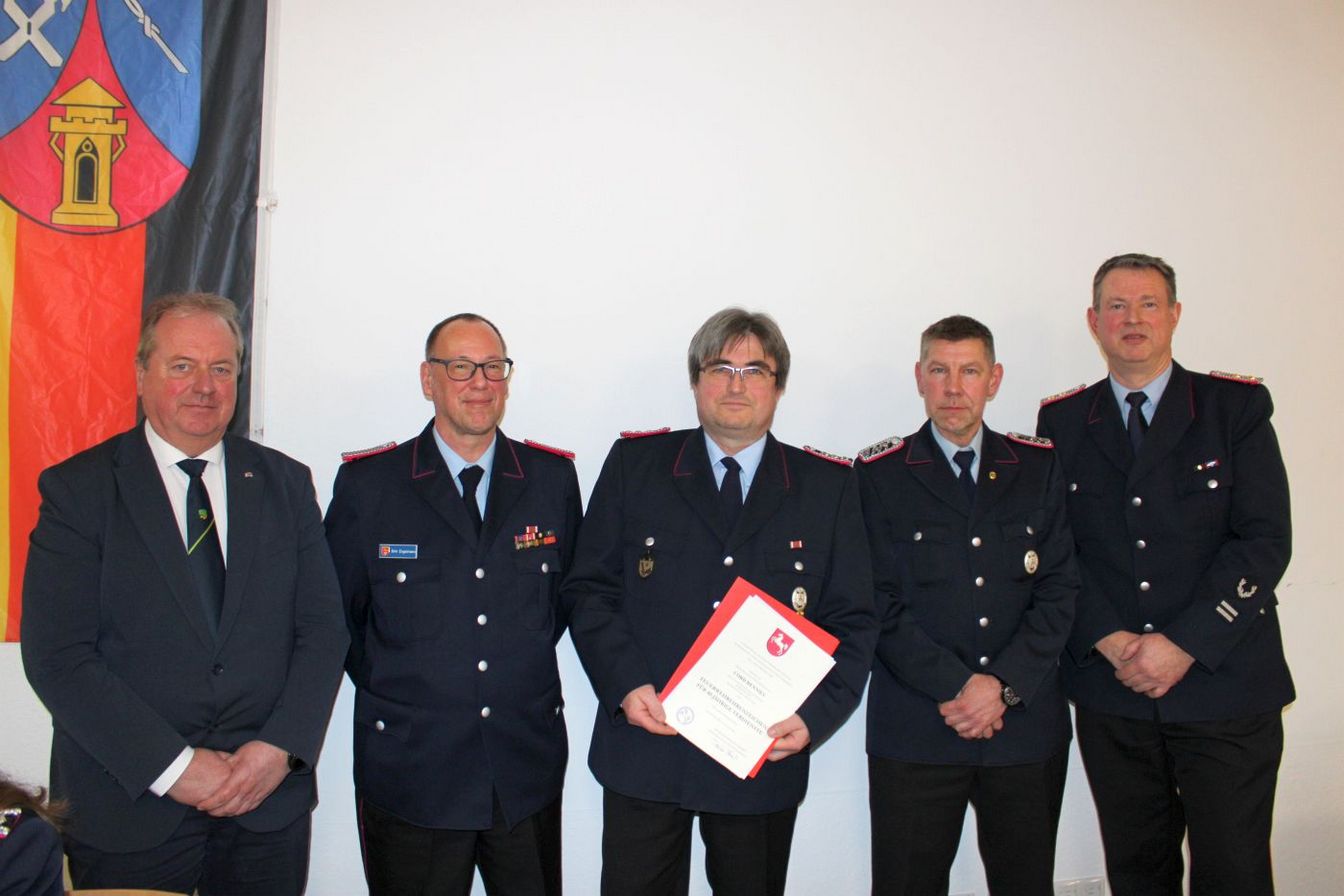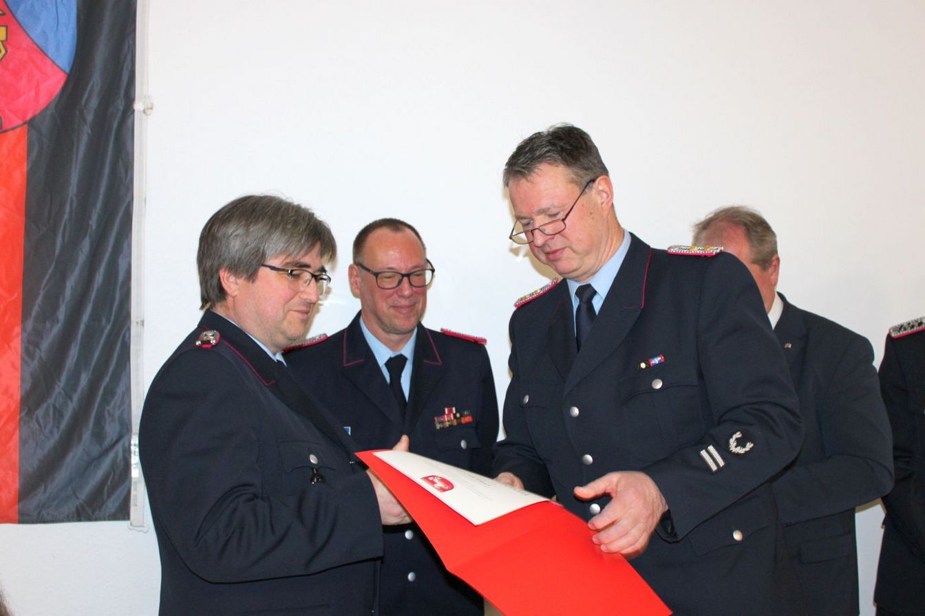 Ein besonderer Dank galt den Kameradinnen und Kameraden, die sich im vergangenen Jahr um die Reaktivierung der Jugendfeuerwehr und die Neugründung der Kinderfeuerwehr gekümmert haben. „Das wird dem Nachwuchs der aktiven Wehr guttun“, so Engelmann. Auch Bürgermeister Henning Schünhof griff dieses Thema auf und lobte das Engagement. Nach dem Neustart gehören sieben Kinder (fünf Mädchen, zwei Jungen) der Jugendfeuerwehr an. In der Kinderfeuerwehr sind bereits 39 Kinder aktiv, zudem gibt es eine Warteliste. Mit zahlreichen Aktivitäten wird dem Nachwuchs die Feuerwehrarbeit spielerisch nähergebracht.