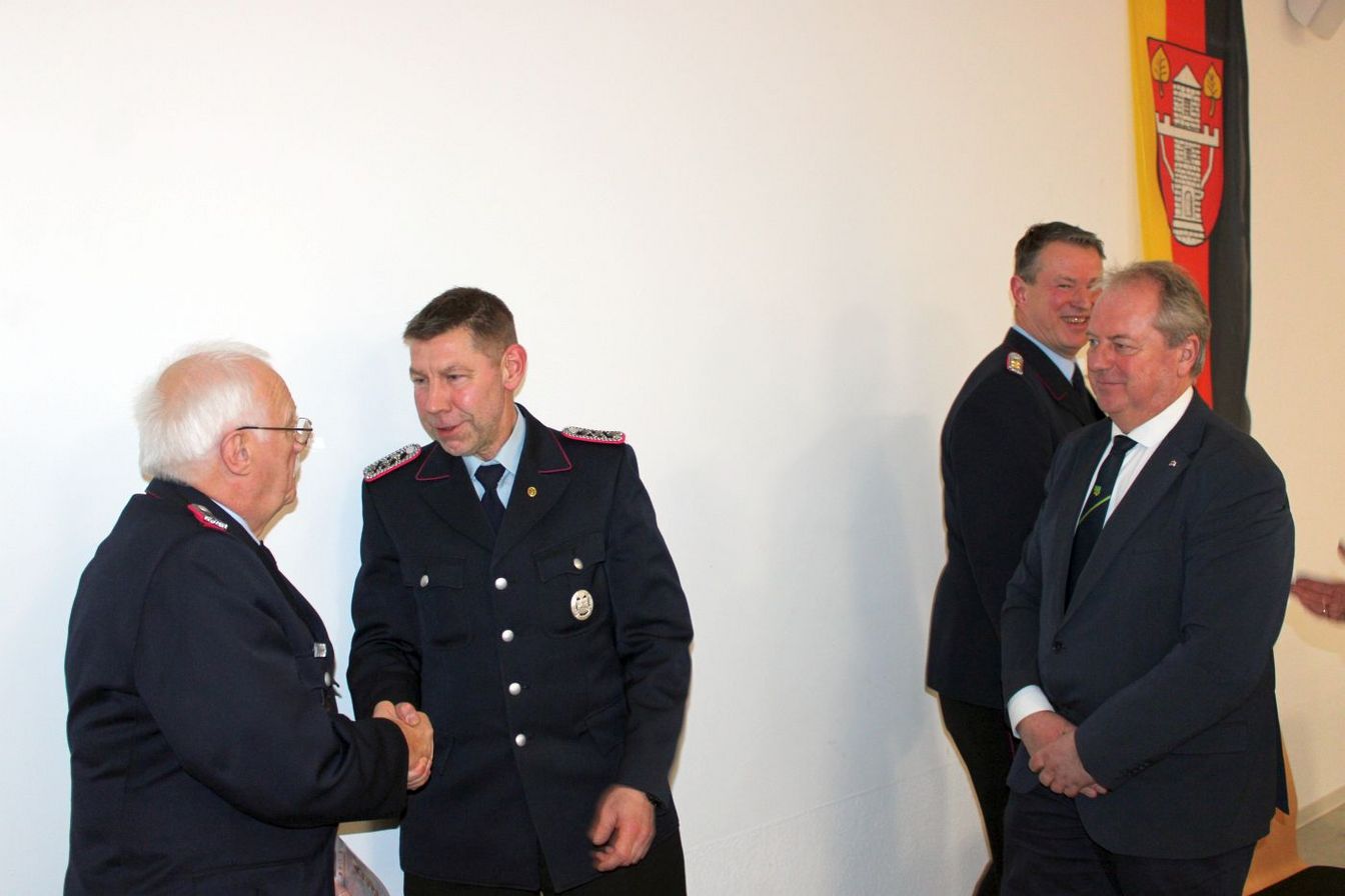 Engelmann begrüßte Kameradinnen und Kameraden, Vertreter aus der Feuerwehr, aus dem Rat, Bürgermeister Henning Schünhof sowie weitere Gäste. In seinem Bericht erinnerte der Ortsbrandmeister an das 90-jährige Jubiläum im vergangenen Jahr, das gemeinsam mit der Ortsfeuerwehr Großgoltern veranstaltet wurde. „Das waren drei tolle Tage. Ich danke allen, die bei der Umsetzung geholfen haben“, so Engelmann. Neben dem Jubiläum belebte die Ortswehr mit einem Laternenumzug und dem Osterfeuer das Dorfleben.