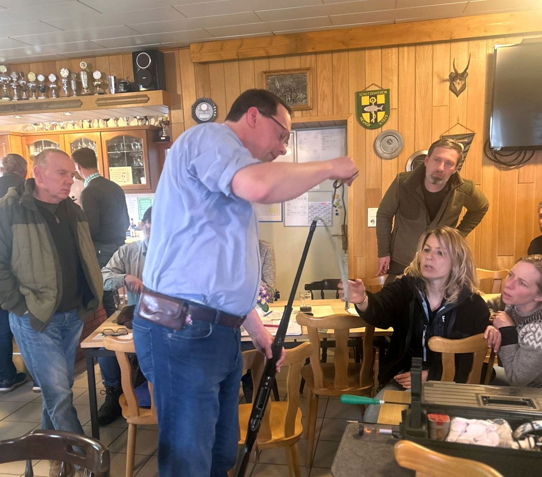 Im praktischen Teil demonstrierte Deiters an einer Jagdbüchse den richtigen Einsatz verschiedener Reinigungsmaterialien wie CLP-Ölen, Putzstock und Patches. Dabei wies er auch auf mögliche Gefahren, etwa bei der sogenannten „chemischen Reinigung“, hin. Zudem gab er hilfreiche Tipps für die Praxis, beispielsweise zur Nutzung einer PET-Flasche zum Auffangen von Reinigungsrückständen an der Mündung oder zur Reinigung von Schalldämpfern. Während des Seminars ging der Referent ausführlich auf Fragen der Teilnehmer ein.