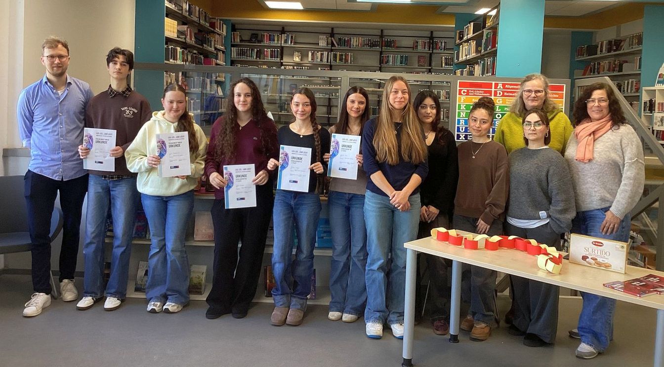 Dort mussten die Jugendlichen ihre Lesekompetenz auf Spanisch unter Beweis stellen. Besonders mit Ausdrucksstärke, sicherer Aussprache und guter Textgestaltung konnten Sophia Gottlob und Melina Seeger die Jury überzeugen. Beide setzten sich schließlich gegen ihre Konkurrenz durch und belegten jeweils den ersten Platz in ihrem Jahrgang.