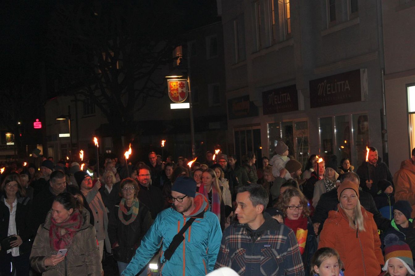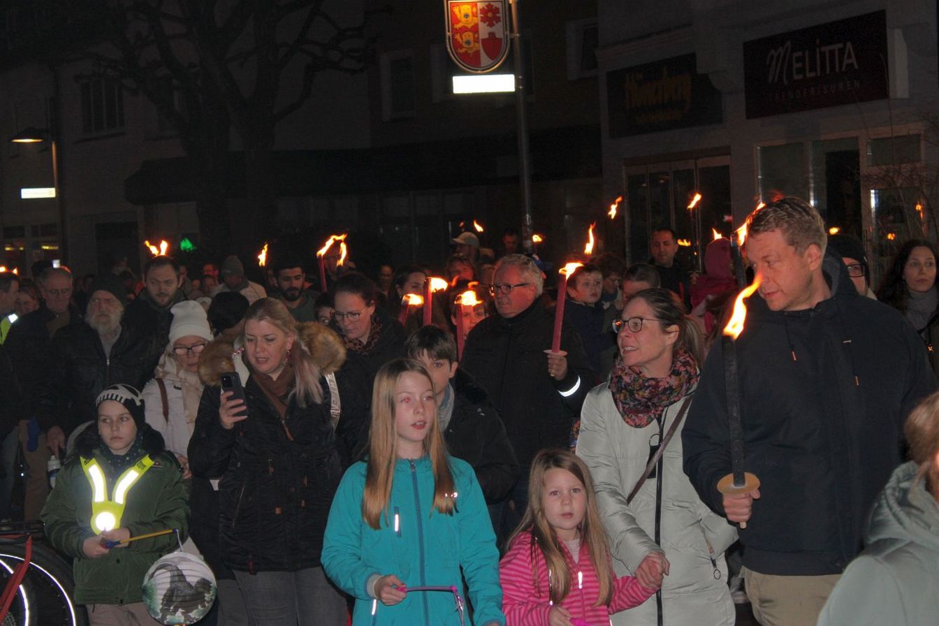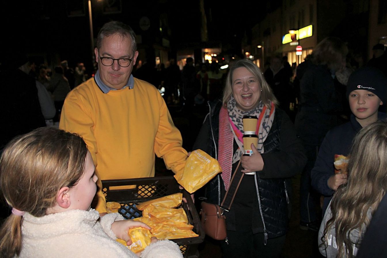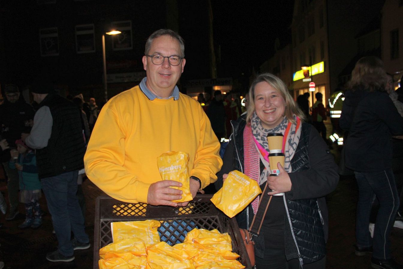 Bürgermeister Henning Schünhof kam nicht mit Fackel, sondern mit Grubenlampe zum Umzug: „Ich finde es immer schön, wenn die Innenstadt voller Menschen ist. Es ist auch eine große Freude, dass so viele Helferinnen und Helfer den Umzug begleiten und die Organisatoren von Unser Barsinghausen diesen Laternenumzug wieder ermöglicht haben.“