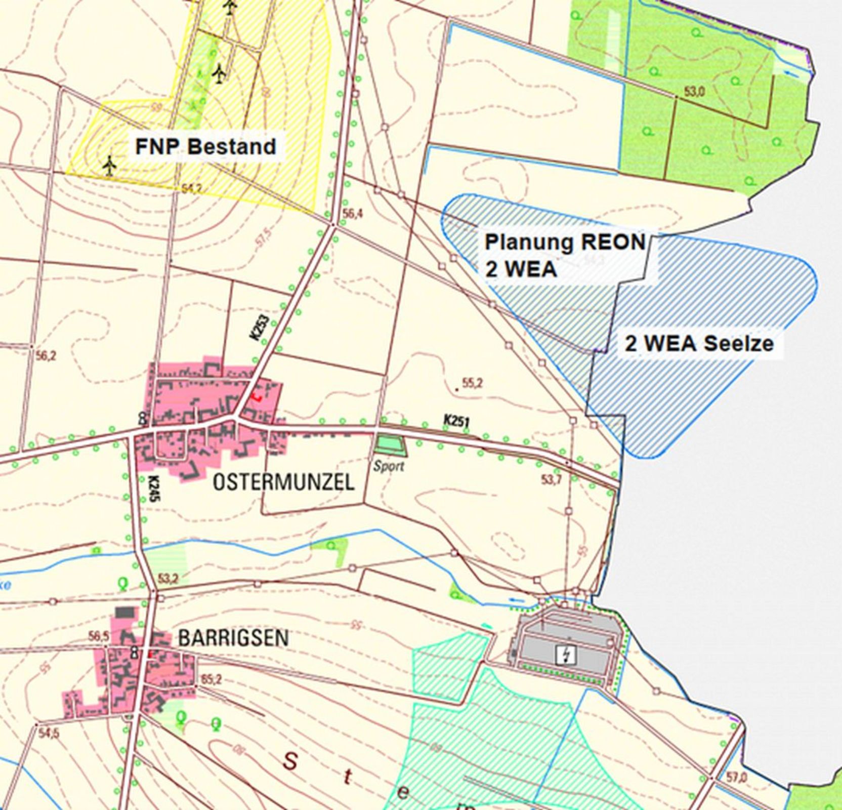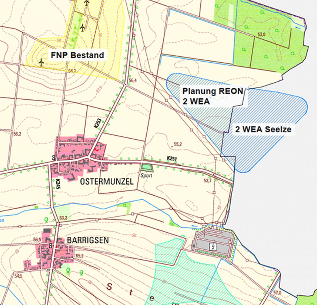 Mit dem Beschluss zur Änderung des Flächennutzungsplanes durch den Verwaltungsausschuss am 17. Dezember 2024 ist der Startschuss für die Windparkplanung erfolgt. Aktuell sind vier Windenergieanlagen (WEA) vorgesehen. Zwei Anlagen im Nordwesten des Plangebietes unterliegen aufgrund des militärischen Schutzbereichs des Fliegerhorstes Wunstorf (Sektor NW 1) einer Höhenbegrenzung von maximal 233 Metern über Normalhöhennull (üNN). Dies entspricht einer Höhe von etwa 178 Metern über Grund. Für die beiden weiteren Anlagen im Süden und Osten ist derzeit eine Gesamthöhe von rund 249,5 Metern geplant.