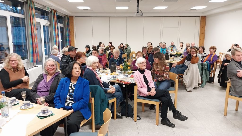 Am Samstag, 15. November war der offizielle Festakt in der Petrusgemeinde und das 20-jährige Bestehen wurde gefeiert. Zunächst gab es zur Begrüßung für alle einen Sektempfang in lockerer Gesprächsrunde. Bereits im November 2015 wurde hier auch das zehnjährige Jubiläum veranstaltet. Rosemarie Struß, die Mitbegründerin und Ehrenbürgerin der Stadt Barsinghausen ließ die Jahre des Frauentreffs nochmal Revue passieren. Es wurden Grußworte von der Landtagsabgeordneten Claudia Schüßler und dem stellvertretenden Bürgermeister Karl-Heinz Tiemann überbracht und die Arbeit des Internationalen Frauentreffs gewürdigt. Der Saal war bis auf den letzten Platz besetzt. Viele Gäste, Weggefährten und Netzwerkpartner waren da - ein internationaler, generationsübergreifender und bewegender Austausch. Zwischendurch spielten Anne Vogt und ihr Ehemann Jochen auf der Gitarre und es wurde gemeinsam gesungen.