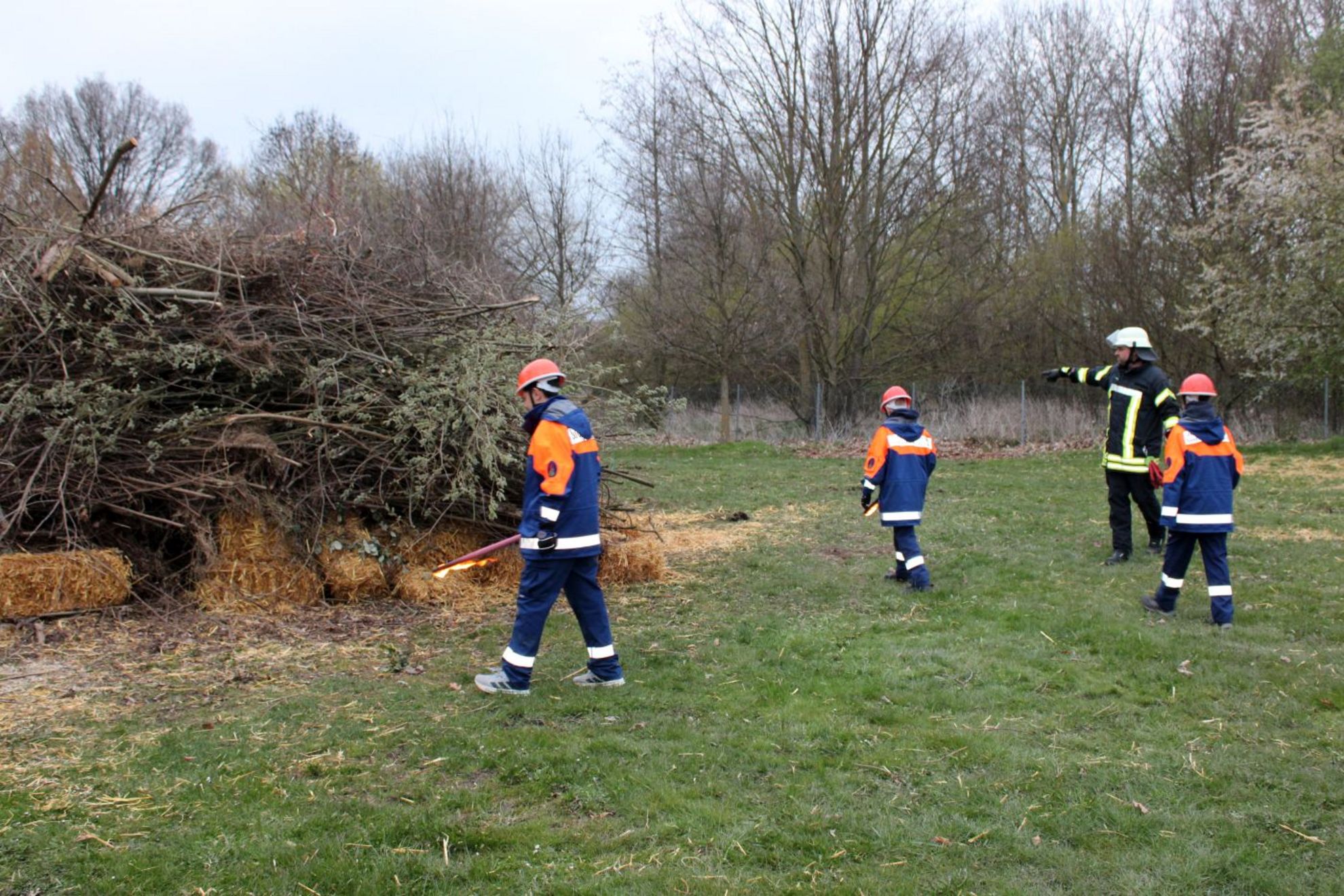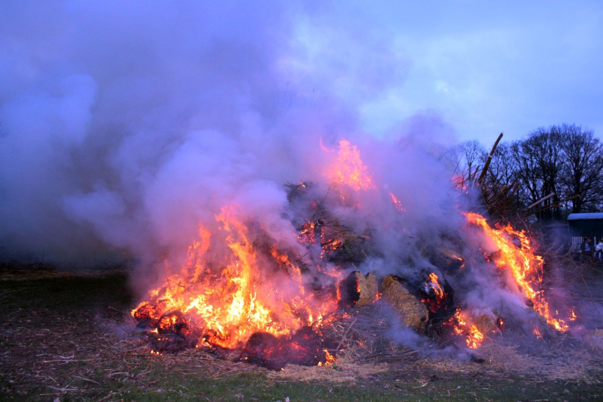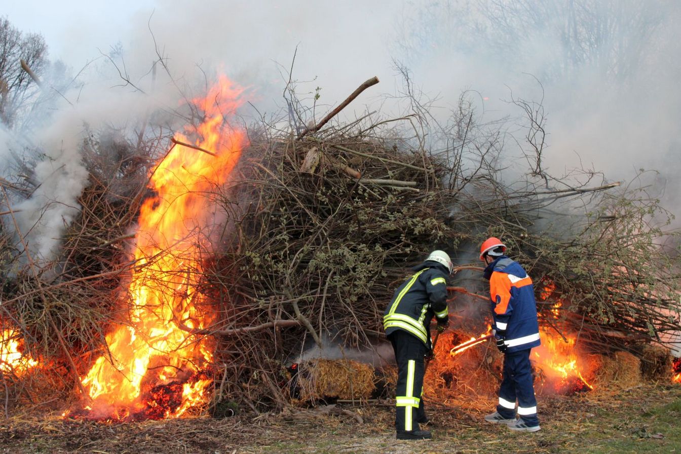 Während sich die Besucher um das aufgebaute Brenngut versammelten, entzündete die Jugendfeuerwehr ihre Fackeln und durfte erstmals das Feuer entfachen. Gegen 19.30 Uhr brannte das Osterfeuer schließlich.
