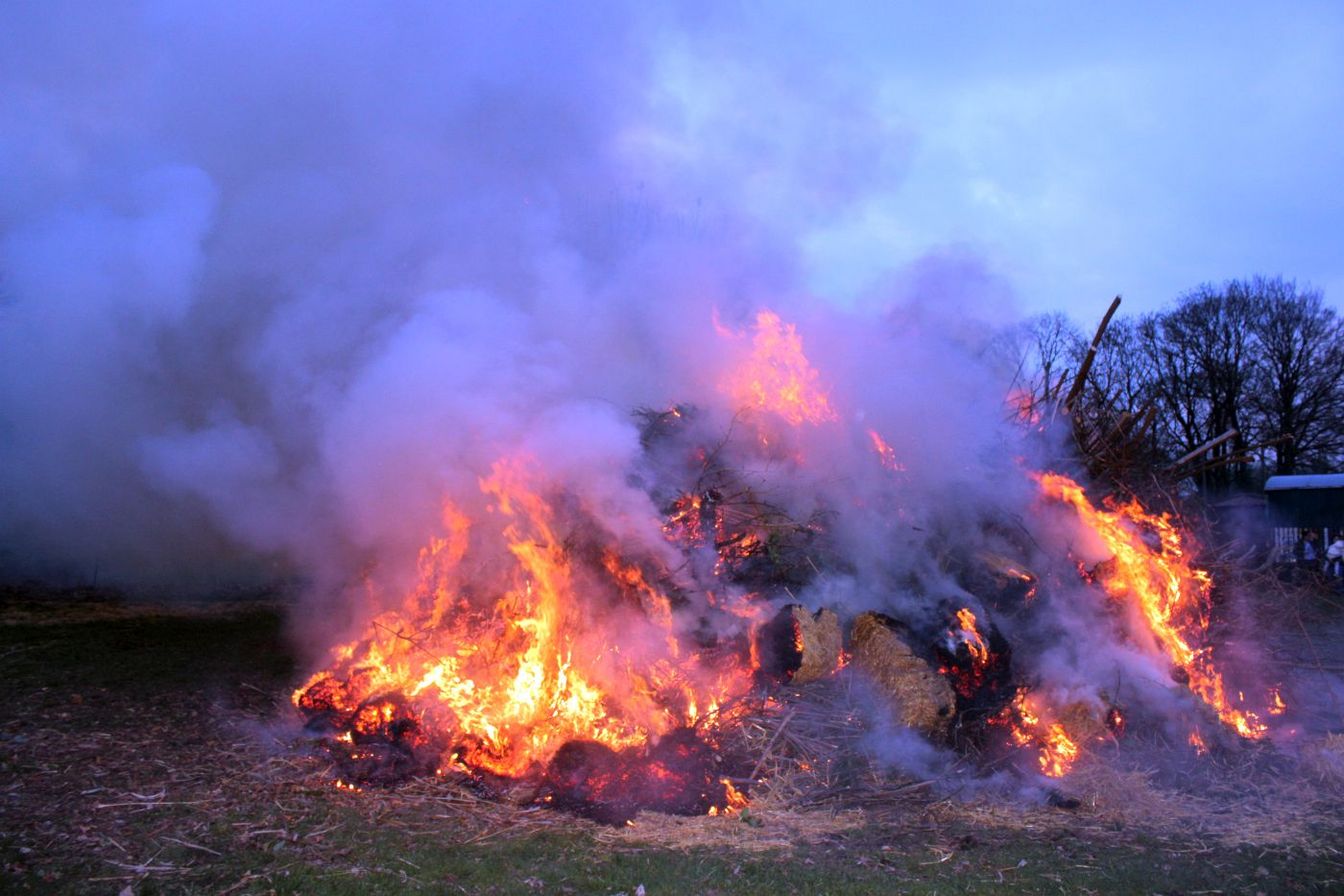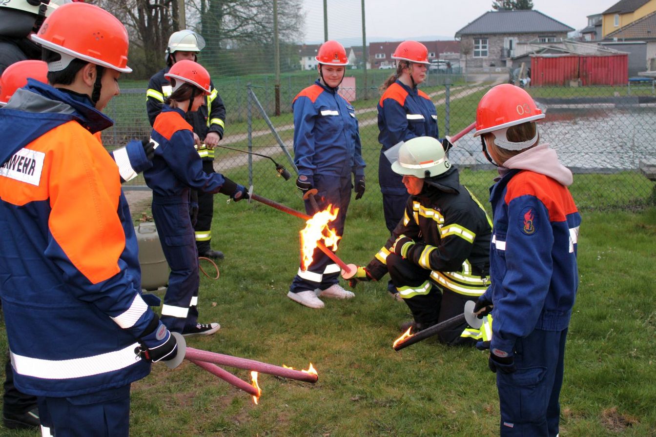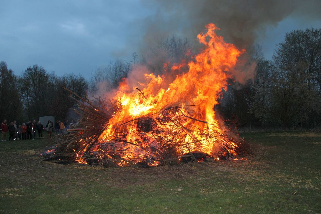 Während sich die Besucher um das aufgebaute Brenngut versammelten, entzündete die Jugendfeuerwehr ihre Fackeln und durfte erstmals das Feuer entfachen. Gegen 19.30 Uhr brannte das Osterfeuer schließlich.