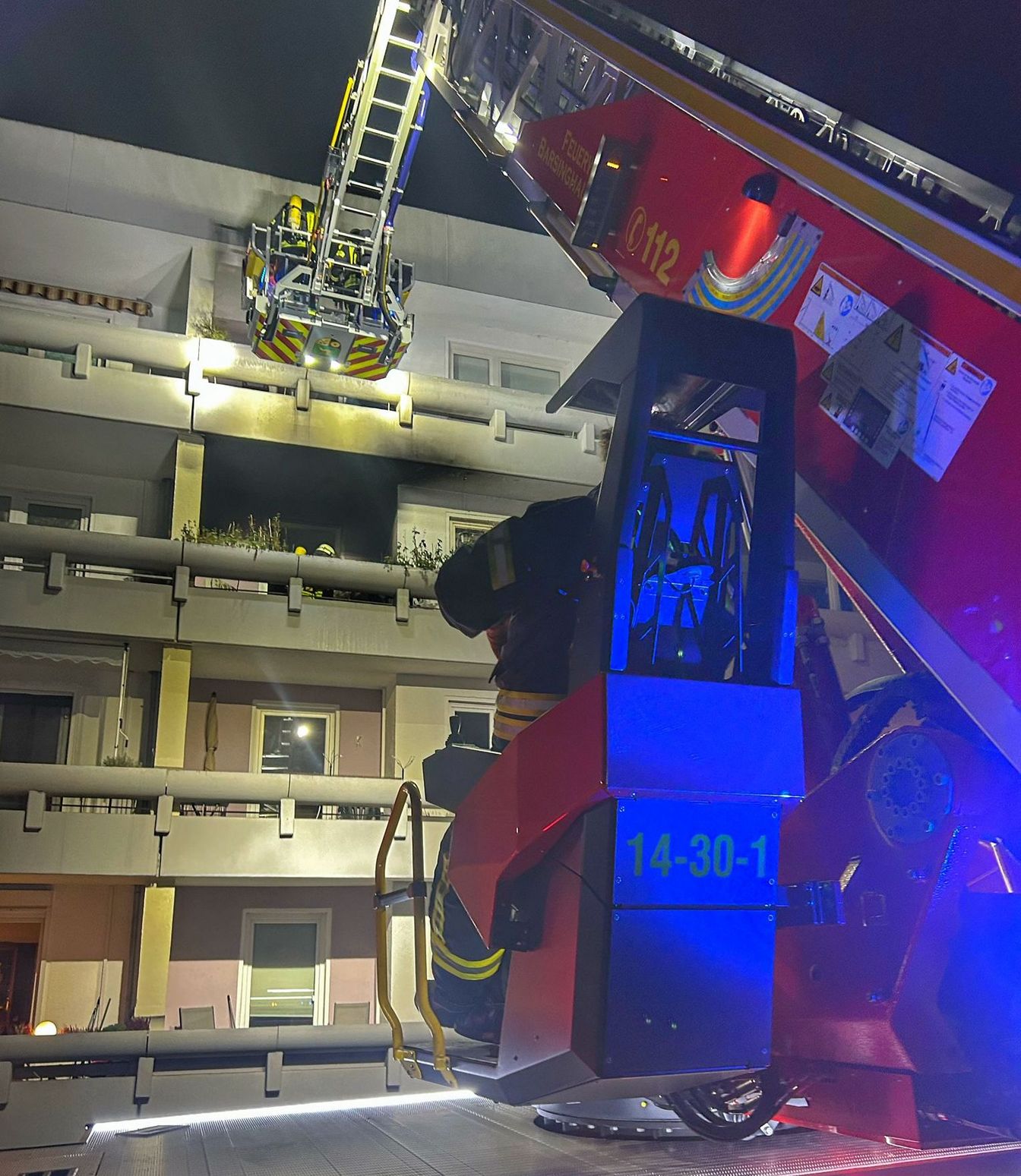 Die Einsatzkräfte fanden deutlich sichtbare Ruß- und Rauchspuren am Balkon und an der Fassade bis in das dritte Obergeschoss vor. Der Rettungsdienst betreute den Bewohner bereits beim Eintreffen der Feuerwehr.