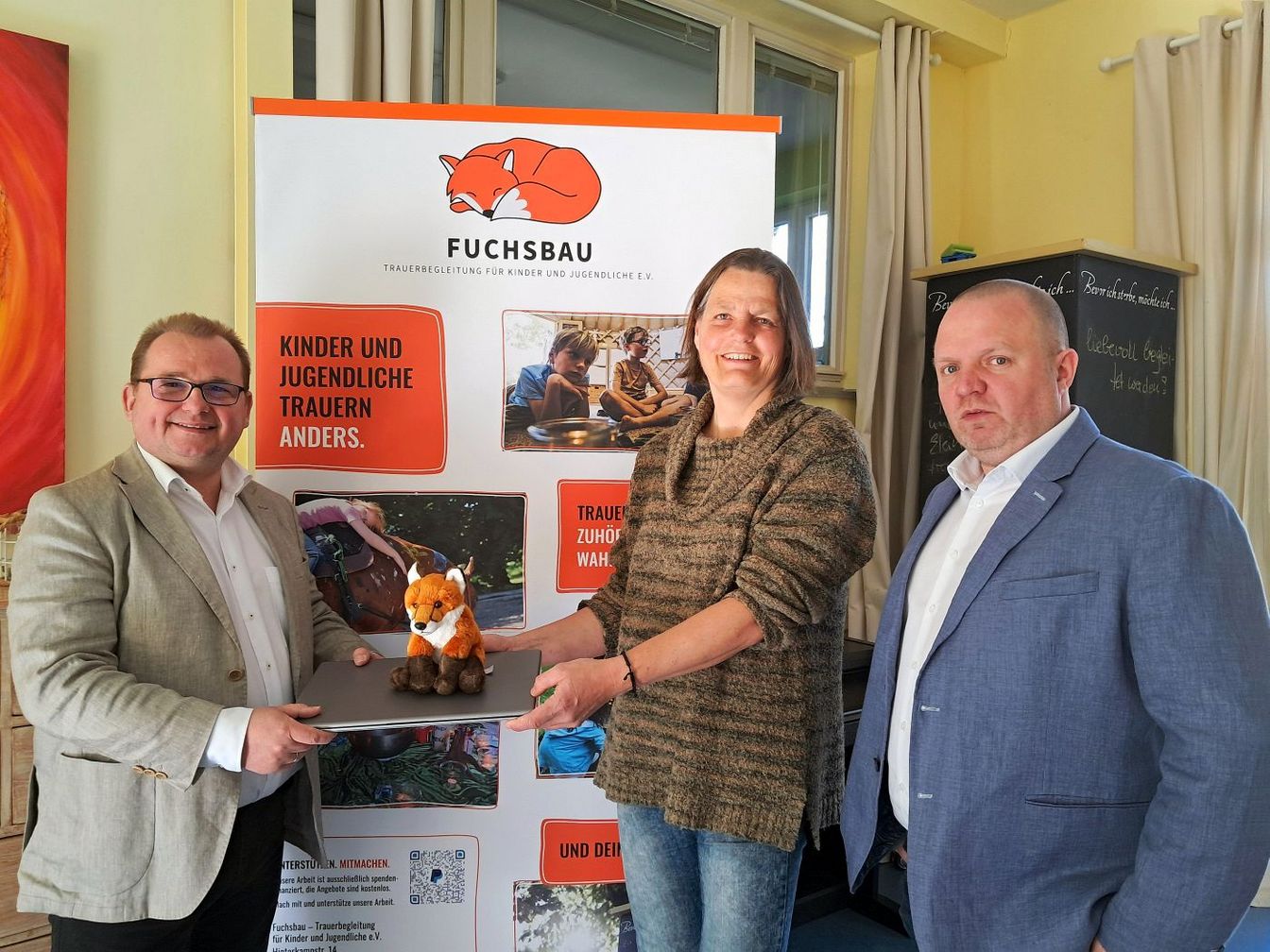 Barsinghausen. Der Fuchsbau, die Anlaufstelle für Trauerbegleitung bei Kindern und Jugendlichen im Deistervorland, hat einen neuen Laptop gespendet bekommen. Dank der Unterstützung von Marek Karasch und Daniel Viebahn, den Geschäftsführern der CTB IT GmbH in Barsinghausen, konnte die EDV-Ausstattung des Vereins optimiert werden, um die Trauerarbeit des Vereins durch effiziente Hard- und Software Rahmenbedingungen zu erleichtern.