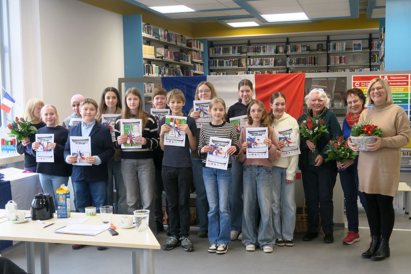 Nachdem alle Schüler gelesen hatten, zog sich die Jury zur intensiven Beratung zurück. Bei den Lesern fiel die Anspannung langsam ab und man unterhielt sich angeregt bei leckeren Croissants und Pains au chocolat, die dankenswerterweise vom Schulverein für den besonderen Anlass spendiert wurden. Zur Siegerehrung wurde es noch einmal spannend. Die ersten drei Plätze wurden ausgewählt: Für die beste Leseleistung wurde Ole vom Hannah-Arendt-Gymnasium ausgezeichnet, gefolgt auf Platz 2 von Elsa vom Hölty-Gymnasium Wunstorf und Platz 3 erreichte Josefine vom Gymnasium Bad Nenndorf. Unter großem Applaus erhielten die Sieger von Schulleiterin Silvia Bethe eine Urkunde und von Französisch-Fachobfrau Johanna Kassing-Kröger einen Buchpreis sowie eine schokoladige Anerkennung. Die anderen Schüler teilten sich einen gemeinschaftlichen 4. Platz. Auch sie wurden mit Urkunden und Schokolade für ihre Leistung bedacht. Im kommenden Jahr findet der Regionalentscheid in Bad Nenndorf statt.