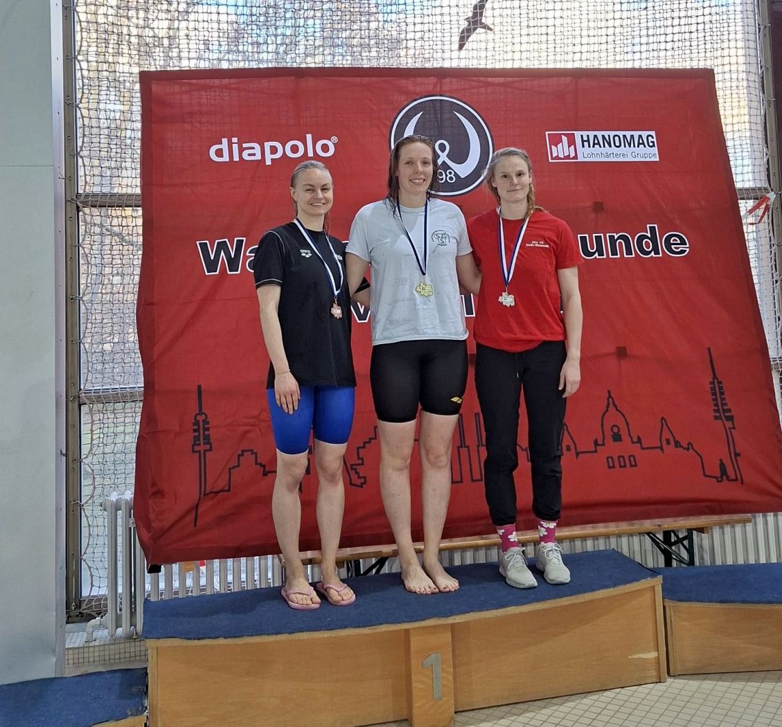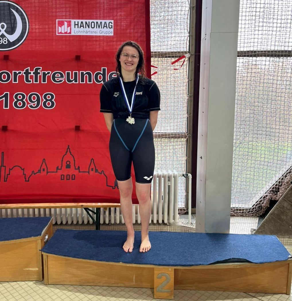Auch Jennifer Busch wusste in Hannover zu überzeugen. Ihr bestes Ergebnis erzielte sie mit Silber über 200 Meter Rücken in 2:44,91 Minuten. Hinzu kamen vierte Plätze über 400 Meter Freistil und 200 Meter Brust, Rang fünf über 200 Meter Schmetterling sowie weitere gute Platzierungen im starken Teilnehmerfeld der Altersklasse 20. Besonders bemerkenswert: Nach ihren eigenen Angaben schwamm sie über 200 Meter Brust rund drei Sekunden Bestzeit und steigerte sich über 200 Meter Rücken sogar um etwa zwölf Sekunden.