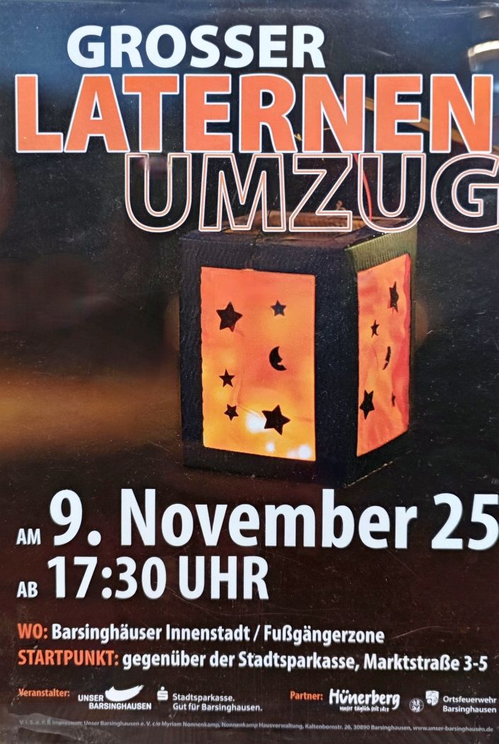 Los geht es bereits am 9. November mit dem Laternenumzug durch die Innenstadt. Ab 17.30 Uhr wird am Anfang der Marktstraße, vor der Stadtsparkasse, gestartet. „Wir werden wieder die bekannte Route laufen und natürlich gibt es am Ende wieder die Weckmännchen von der Bäckerei Hünerberg“, lädt Jennifer Gäfke, Vorstand Unser Barsinghausen, alle Kinder und Eltern herzlich ein. In den vergangenen Jahren nahmen bis zu 1.000 Menschen am Laternenumzug teil. Auch in diesem Jahr werden wieder Musikzüge der Ortsfeuerwehren den Umzug musikalisch begleiten. „Wir bedanken uns auch bei der Feuerwehr Barsinghausen, die die Absicherung übernimmt“, so Gäfke.