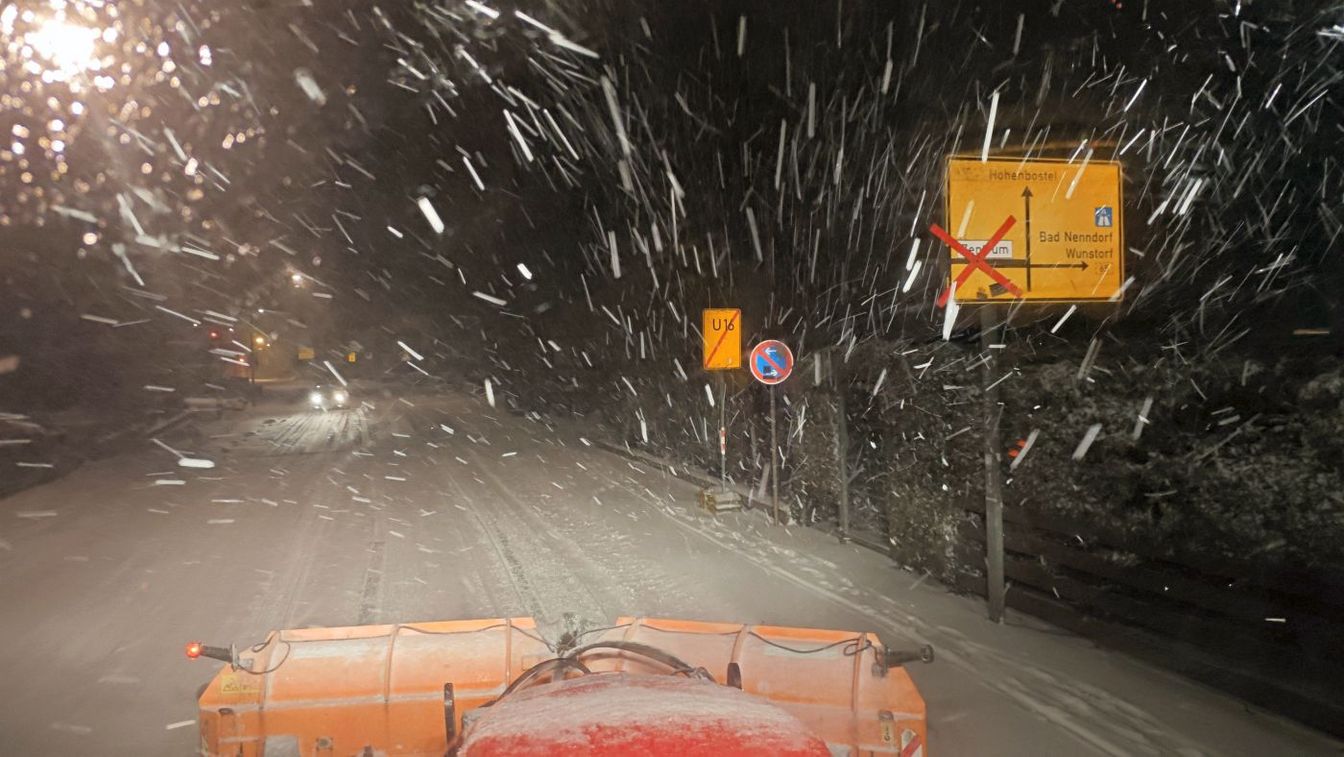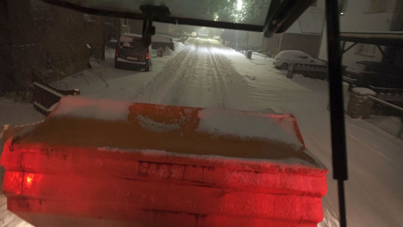 Los ging es um 3.30 Uhr. Gemeinsam mit dem Leiter des Baubetriebshofs, Tobias Hielscher (37), wurde mit dem Pkw eine erste Runde durch Barsinghausen und angrenzende Ortsteile gedreht, um die Lage zu sondieren. „Stellenweise sieht man noch unsere Arbeit von gestern Abend, doch der Neuschnee erfordert ein weiteres Eingreifen“, schätzt Hielscher die Lage am Freitagmorgen ein.