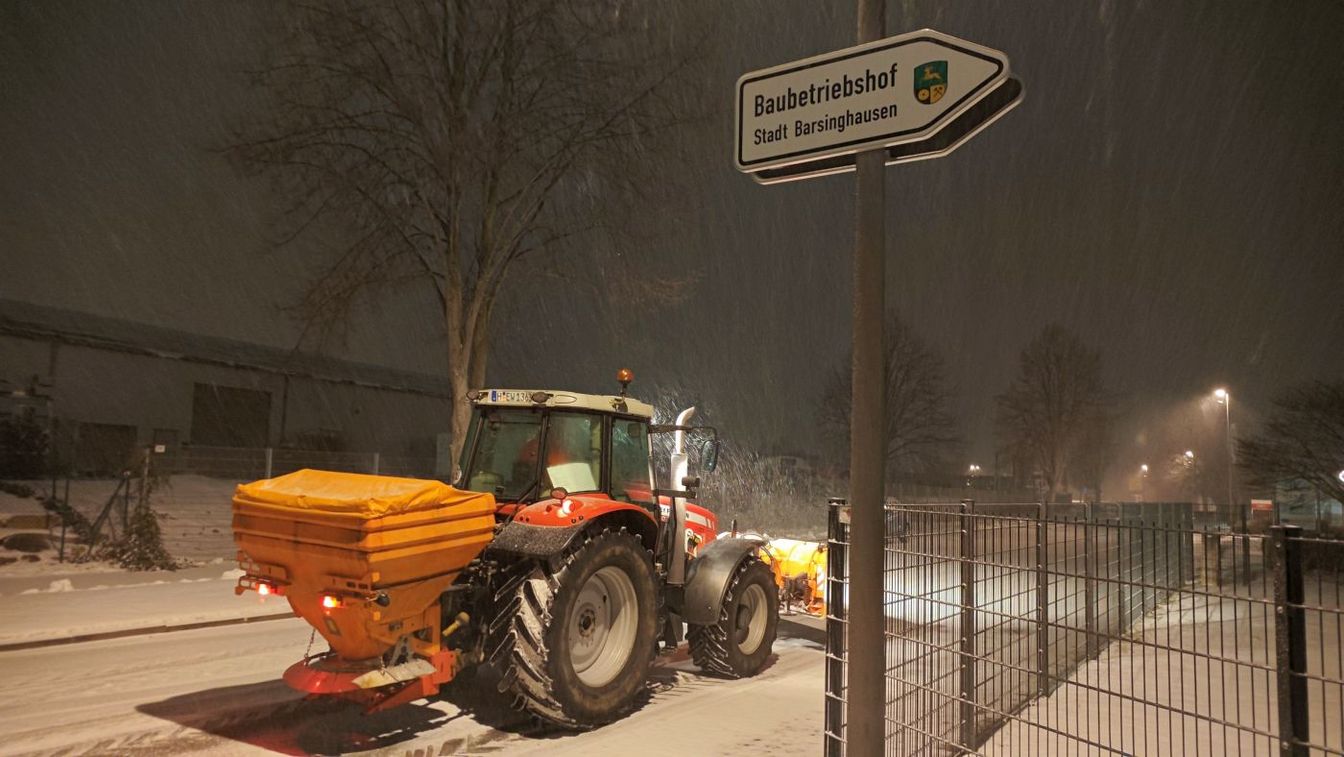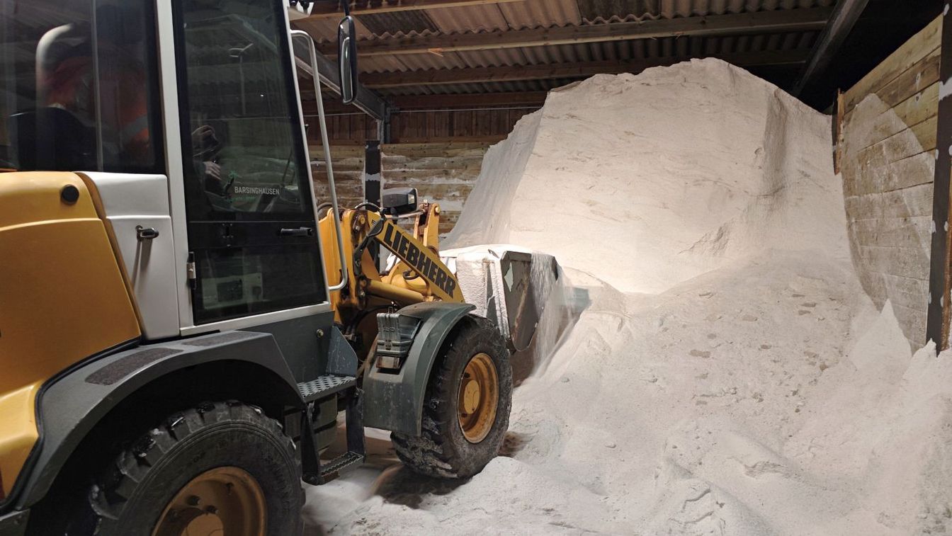 Auf dem Baubetriebshof herrscht bereits reges Treiben. Fahrzeuge werden mit Salz befüllt, und das Team trifft sich um 4 Uhr, um die Lage zu besprechen. Rund 120 Kilometer Straße hat der Baubetriebshof in Barsinghausen zu räumen – mit sechs Fahrzeugen. Das Team von etwa 34 Mitarbeitern kümmert sich neben der Straßenräumung per Fahrzeug auch um Bushaltestellen, Zebrastreifen, Ampelanlagen und Spielplätze. Rund 2.700 Stellen werden von der sogenannten ‚Handkolonne‘ von Schnee und Eis befreit.