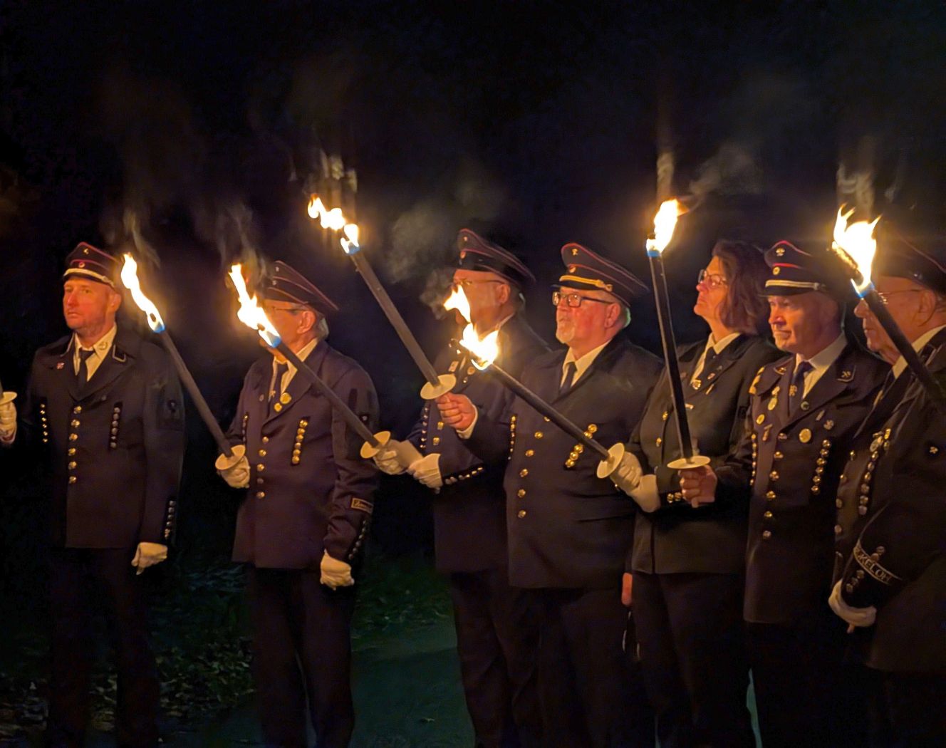 Zum Abschluss führte der Schweigemarsch – untermalt von der Melodie „Der Mond ist aufgegangen“ – zurück zur Halle. Dort eröffnete Alfred Schön mit einem Gedicht eines Feggendorfer Kameraden den offiziellen Teil des Abends und begrüßte alle Gäste.