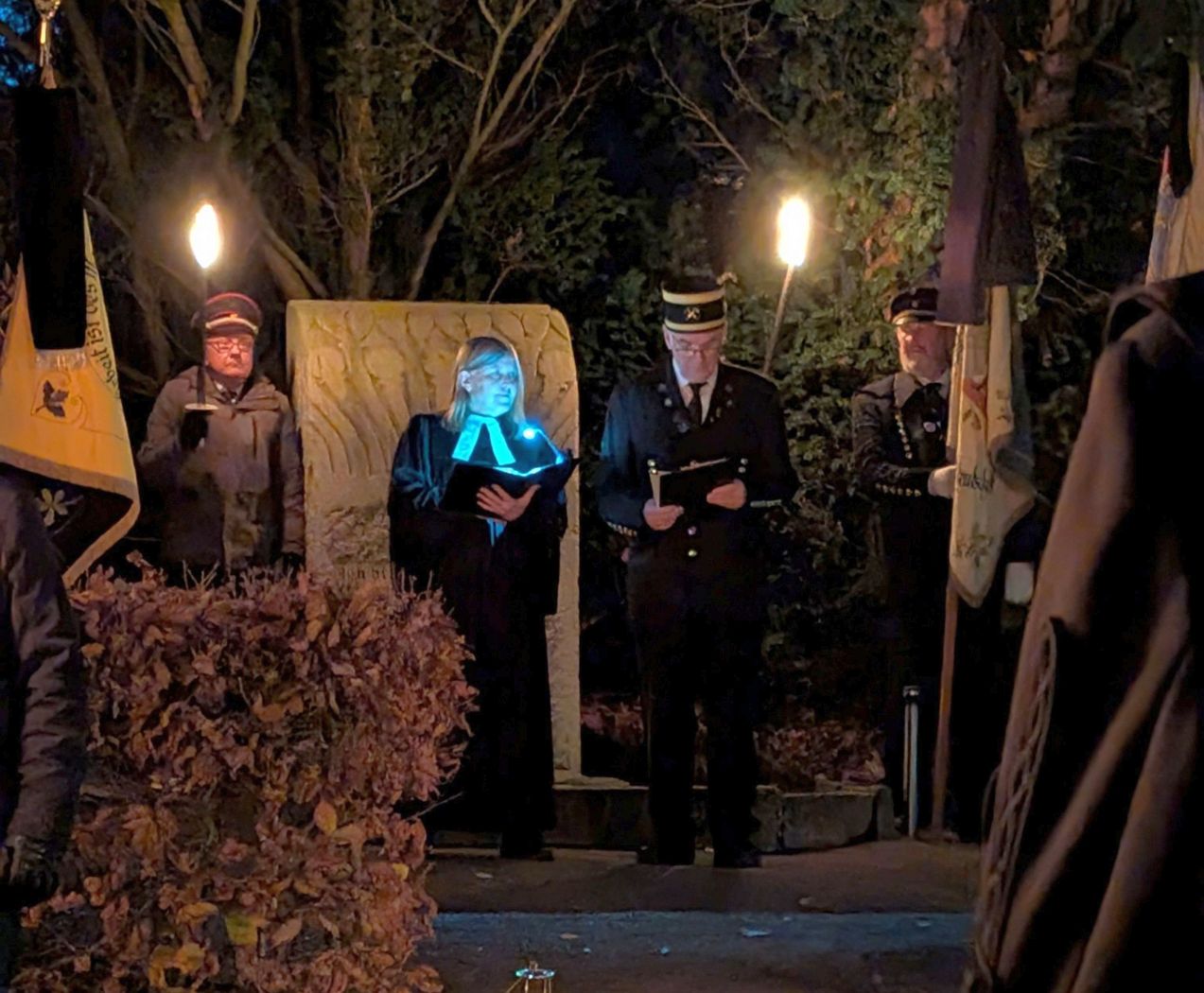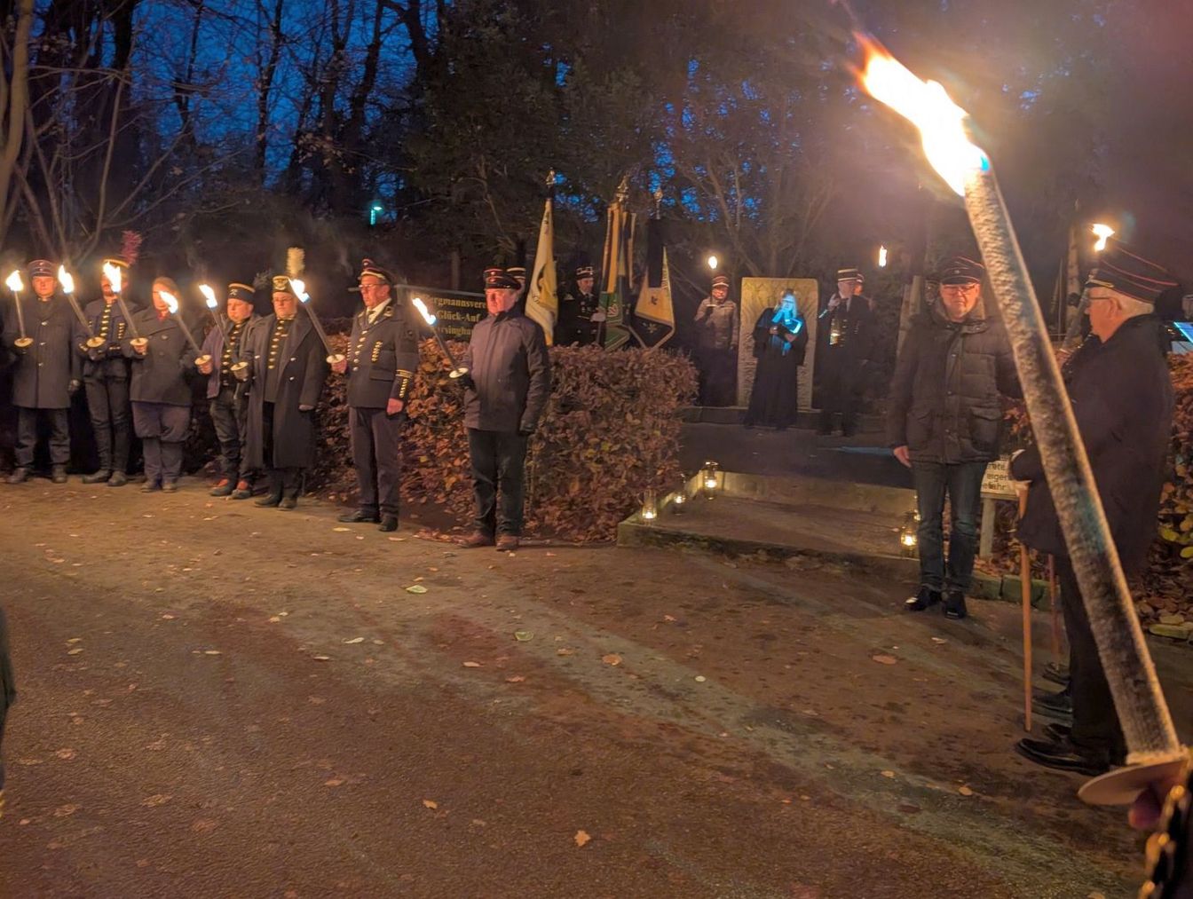 Dort sprach Alfred Schön, 1. Vorsitzender des Bergmannsvereins Barsinghausen, die bergmännischen Einleitungsworte. Pastorin Uta Junginger erinnerte in ihrer Andacht an die Bedeutung der Grubenlampe für die Bergleute unter Tage – als Symbol für Sicherheit, Hoffnung und Orientierung. Ihre Worte spendeten Trost und berührten viele der Anwesenden.