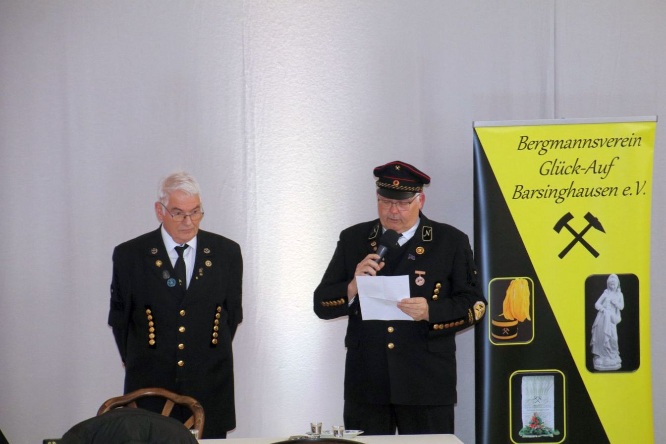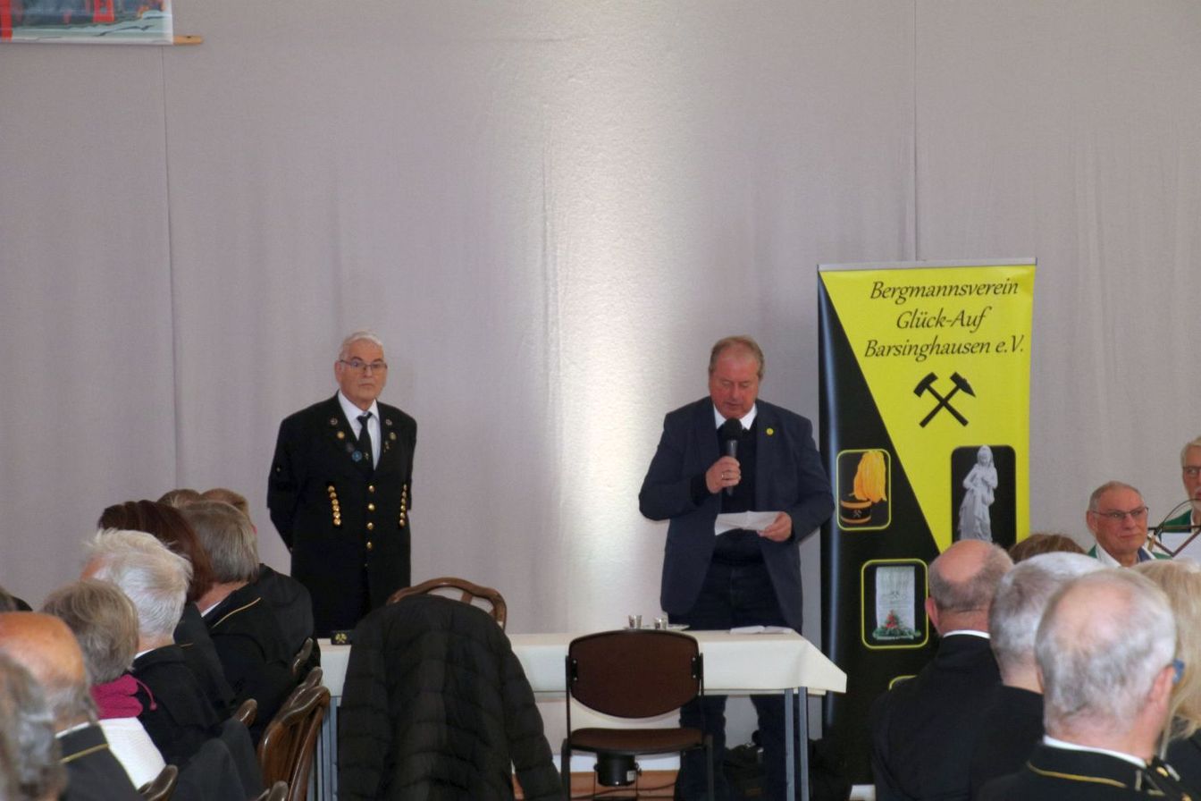 Bürgermeister und Kamerad Henning Schünhof übermittelte die Grüße der Stadt Barsinghausen. Gerhard Pape, Vorsitzender des Landesverbandes der VBN (Vereinigung der Bergmanns-, Hütten- und Knappenvereine Niedersachsen), sprach ebenfalls Grußworte.