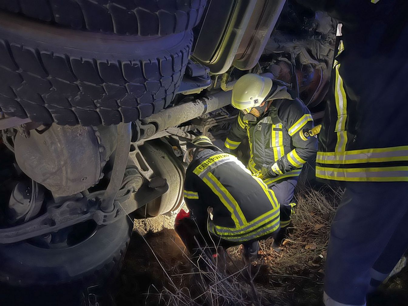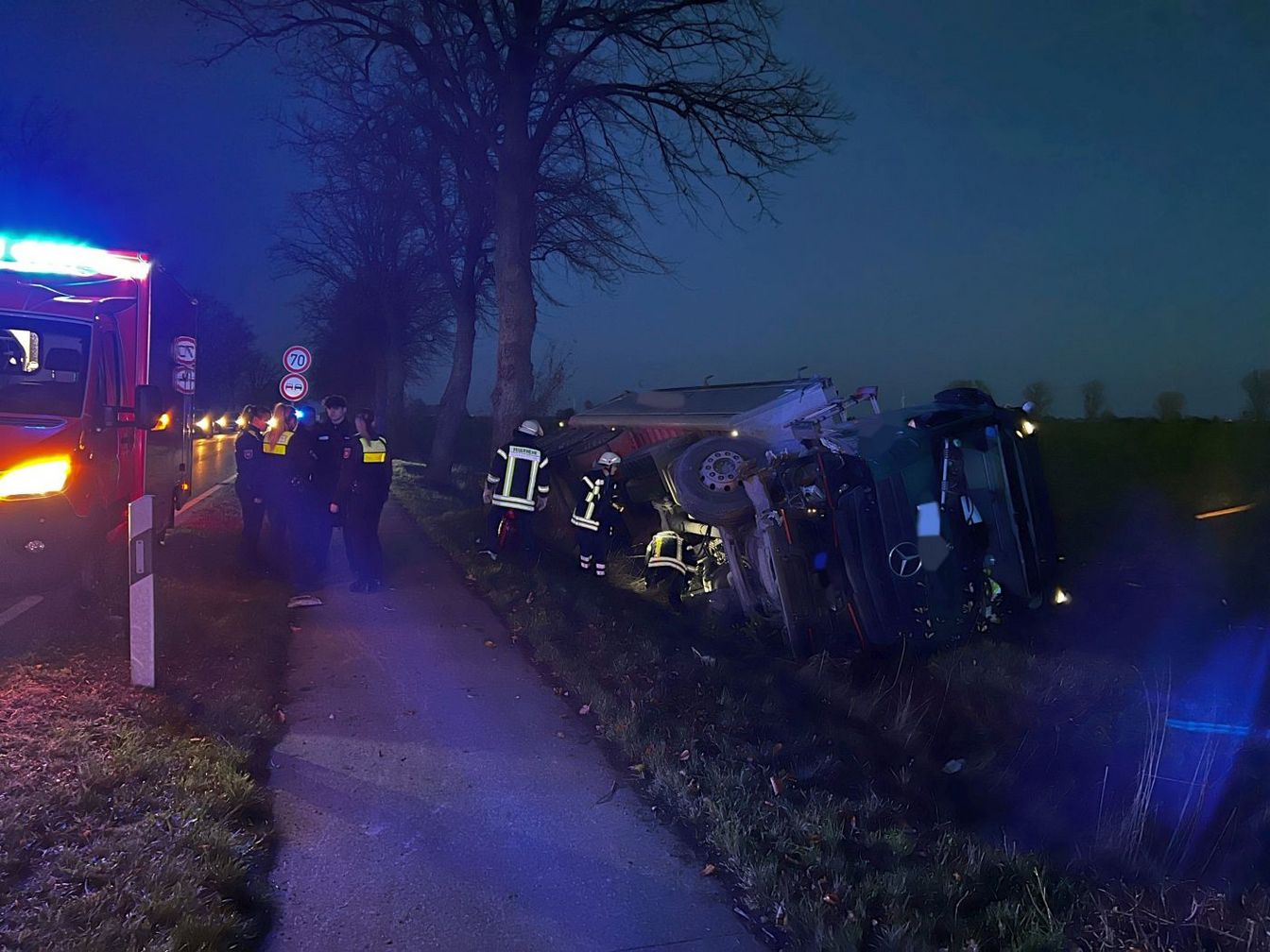 Der 61-jährige Fahrer konnte sich selbstständig aus dem Führerhaus befreien und wurde beim Eintreffen der Feuerwehr bereits durch den Rettungsdienst versorgt.