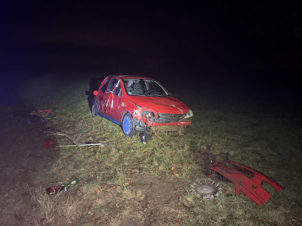 Auto landet auf dem Feld. Foto: E. Bauer / Stadtfeuerwehr Springe