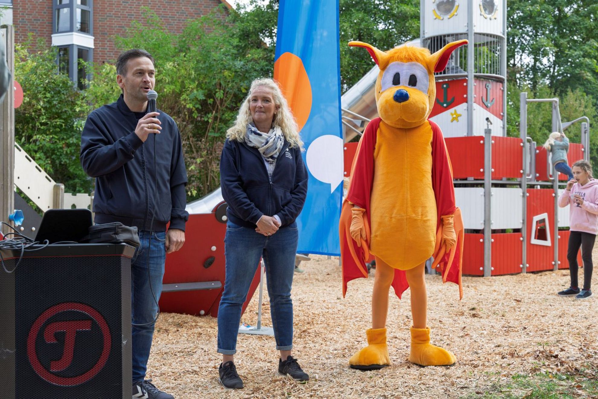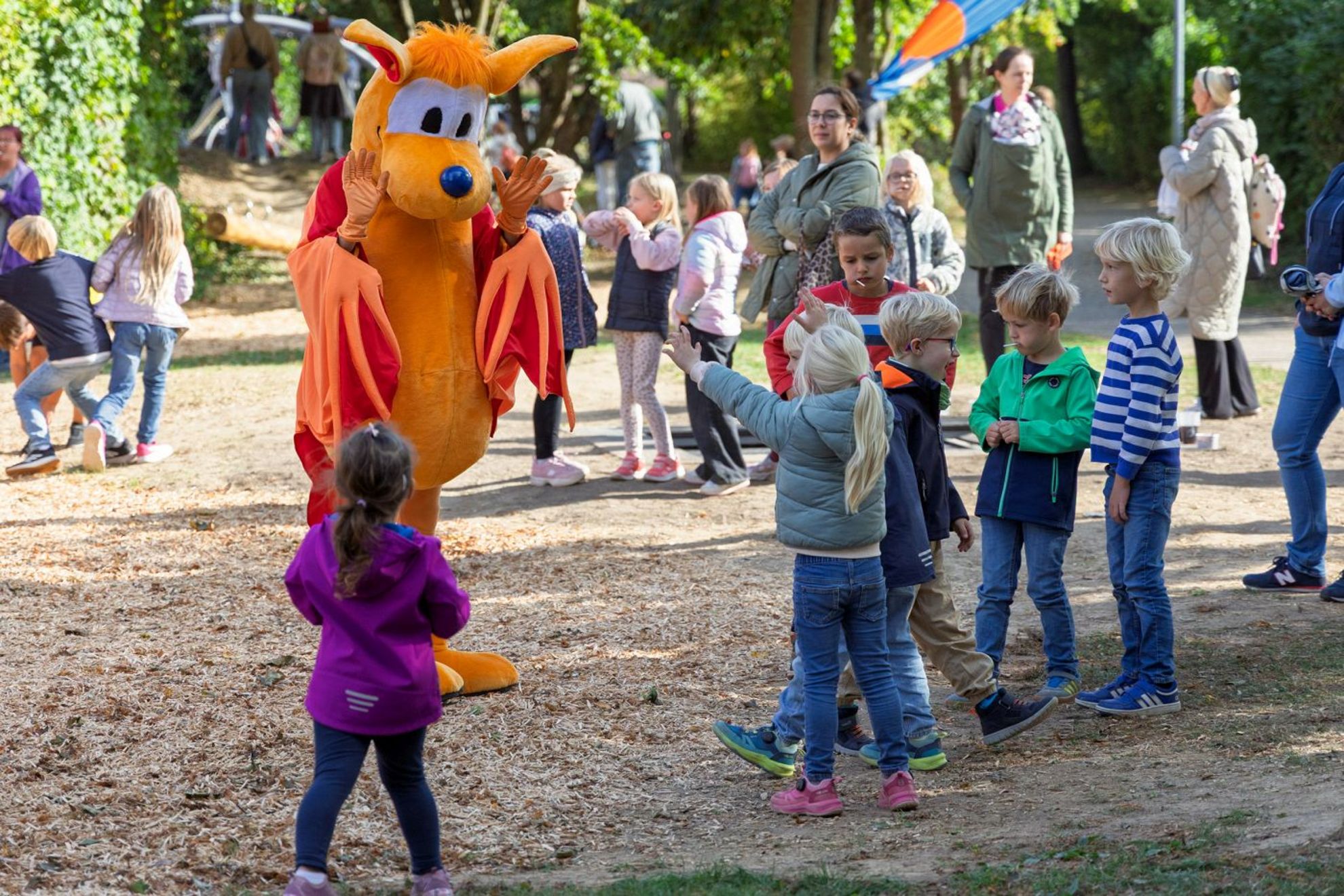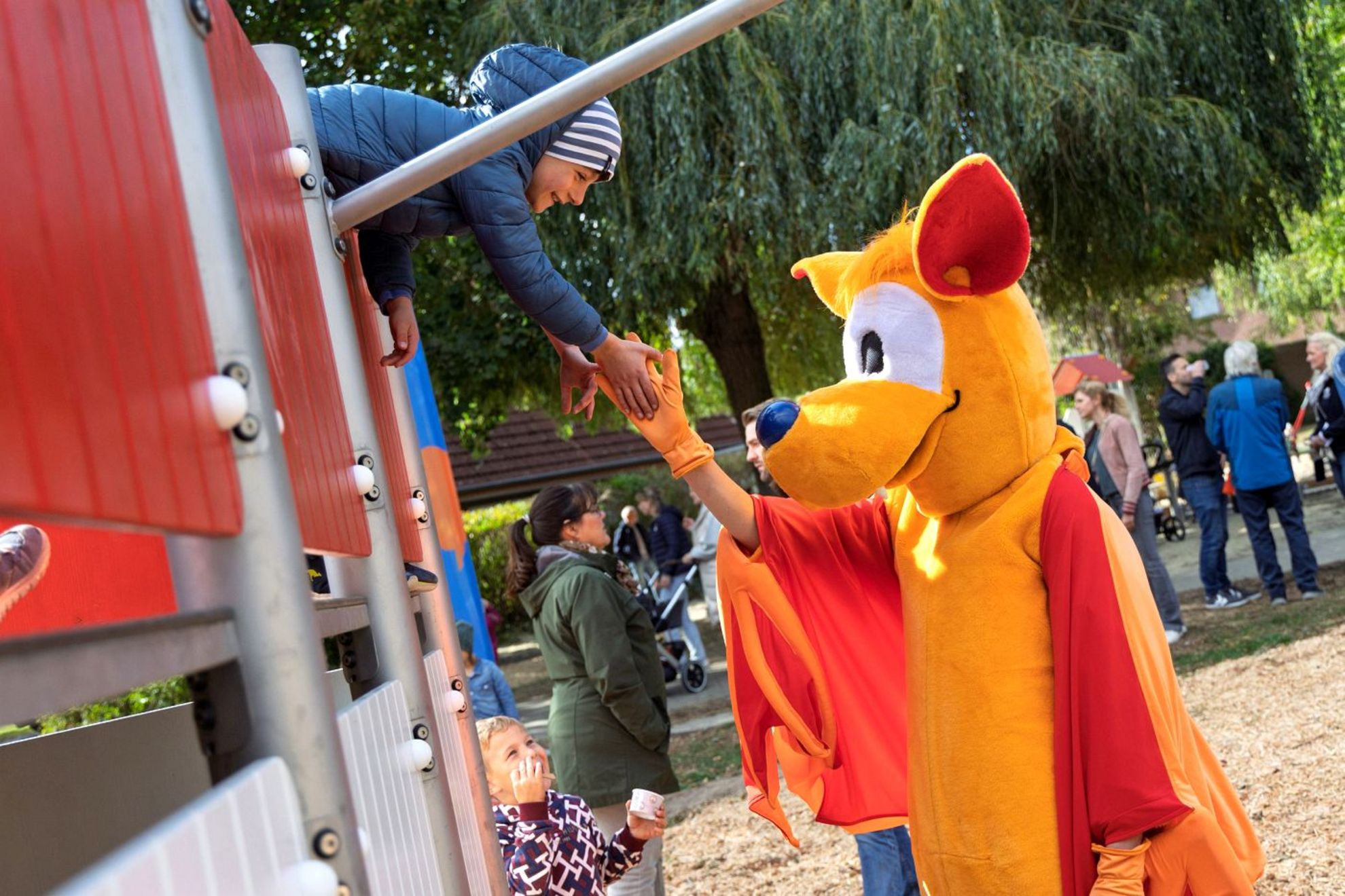 Begleitet und unterstützt wurde die Veranstaltung von der Jugendpflege der Stadt Gehrden, selbstverständlich war auch Stadtmaskottchen Gehrda vor Ort. Gestärkt mit einer Kugel Eis nahmen die Kinder und Jugendlichen die Spielgeräte direkt in Beschlag.