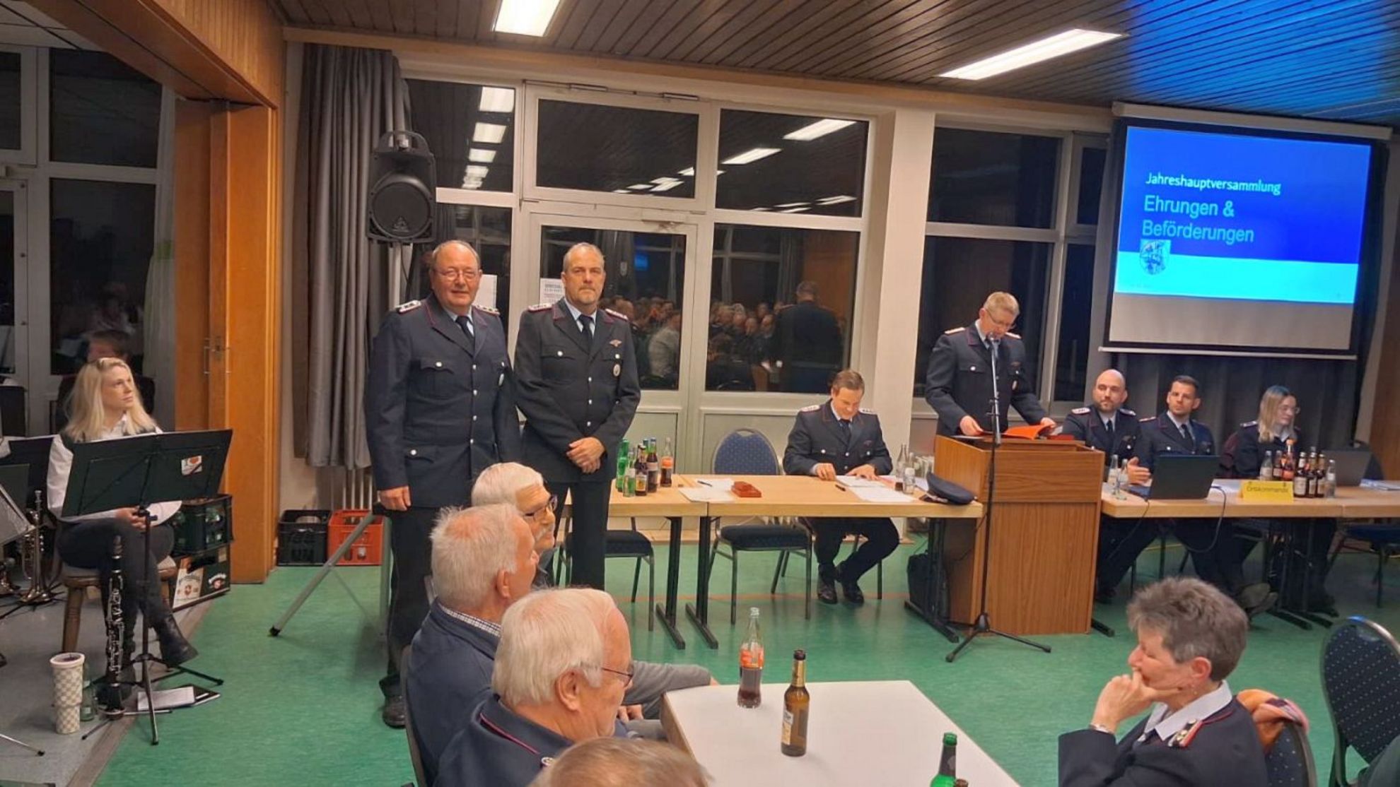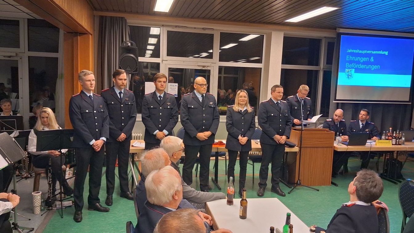 Den Abschluss des Abends bildeten die Ehrungen und Beförderungen der aktiven, passiven und fördernden Mitglieder durch den stellvertretenden Stadtbrandmeister Alexander Stoßberg und Ortsbrandmeister Nicolas Rothenburger. Tim Kitta, Jan Kohlenberg und Paul Zemke wurden zu Oberfeuerwehrmännern befördert. Luisa Meier und Nils Meier erhielten die Beförderung zur Hauptfeuerwehrfrau beziehungsweise zum Hauptfeuerwehrmann. Nicolas Rothenburger wurde zum Brandmeister ernannt.