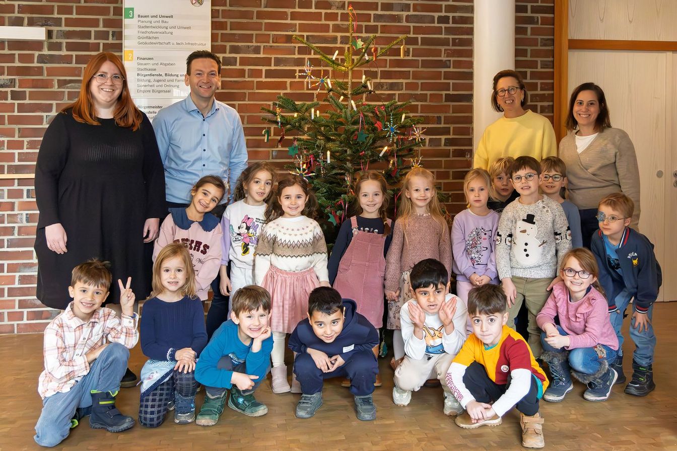 Gehrden. Am letzten Donnerstag herrschte im Rathaus vorweihnachtliche Stimmung. 17 Vorschulkinder aus der Kita Langes Feld schmückten gemeinsam mit Bürgermeister Malte Losert den großen Tannenbaum im Eingangsbereich.