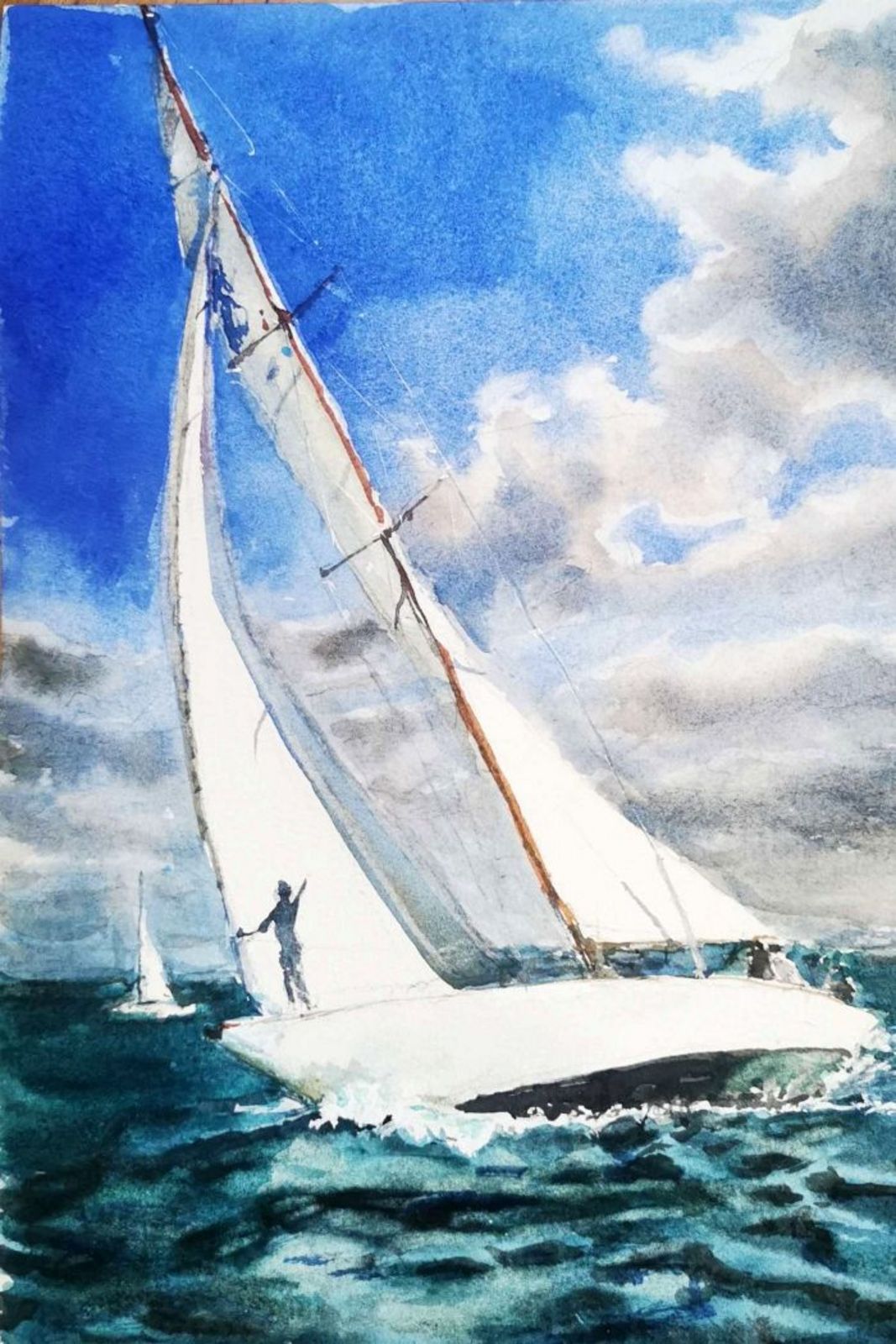 Im Mittelpunkt stehen Aquarelle, die Boote in ganz unterschiedlichen Situationen und Stimmungen zeigen: ruhige Abende vor Anker im warmen Licht des Sonnenuntergangs, dynamische Rauschefahrten bei kräftigem Wind, entspanntes Fahrtensegeln unter blauem Himmel oder farbenprächtige Spinnaker im Gegenlicht. Die Bilder fangen die besondere Atmosphäre auf dem Wasser ein – mal still und meditativ, mal lebendig und kraftvoll.