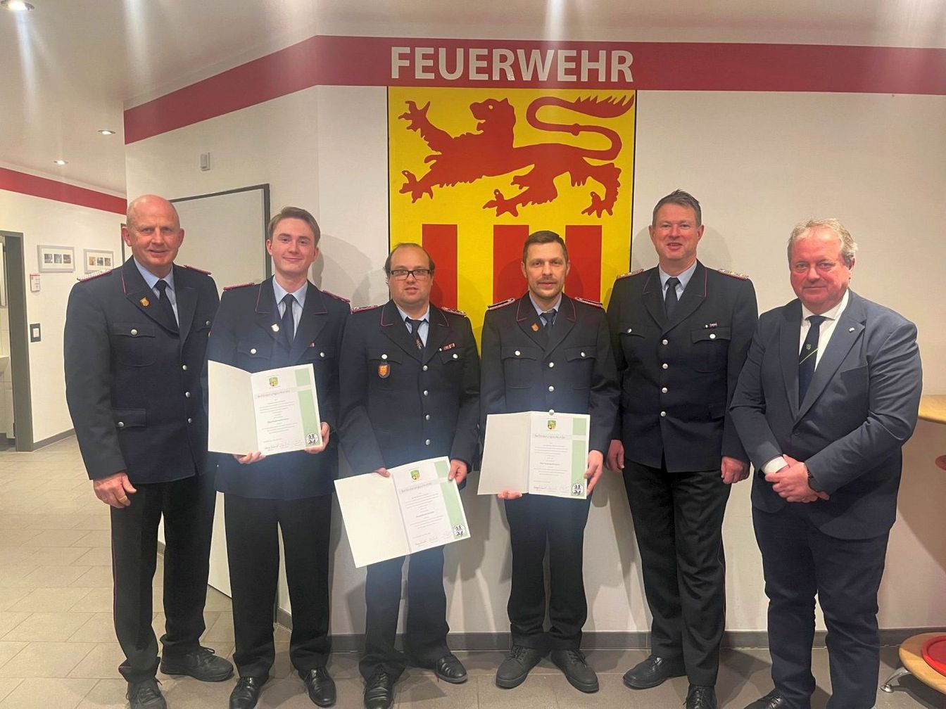 Von den aktiven Kameraden wurde Jan Brückner zum Hauptlöschmeister befördert. Florian Werner, Daniel Füller und Olaf Bettinga wurden zum Ersten Hauptfeuerwehrmann befördert. Leon Effmert ist nun Oberfeuerwehrmann und Matthias Zimmermann darf sich fortan Oberfeuerwehrmann nennen.