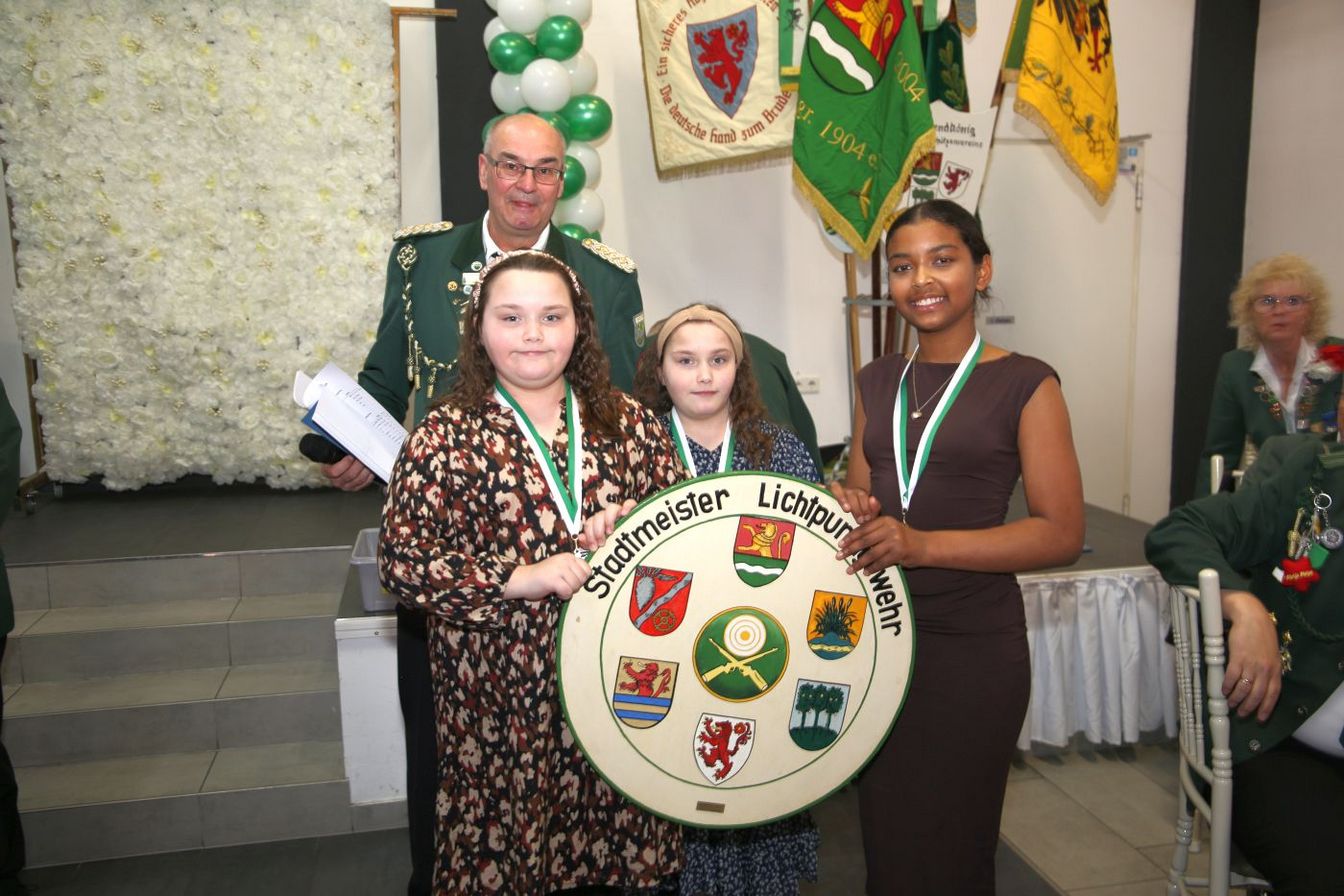 Auch sportlich bot die Stadtmeisterschaft zahlreiche Höhepunkte. In der Jugendklasse überzeugte Romy Grote vom SV Ingeln mit 176,2 Ringen im Luftgewehr. Die Juniorenwertung dominierte Layla Lomowski mit herausragenden 398,9 Ringen. Die unterschiedlichen Ringzahlen erklären sich durch die verschiedenen Wettkampfprogramme: Während die Jugend ein 20 Schuss Programm absolviert, schießen die Junioren 40 Schuss – entsprechend höher fallen die möglichen Ergebnisse aus.