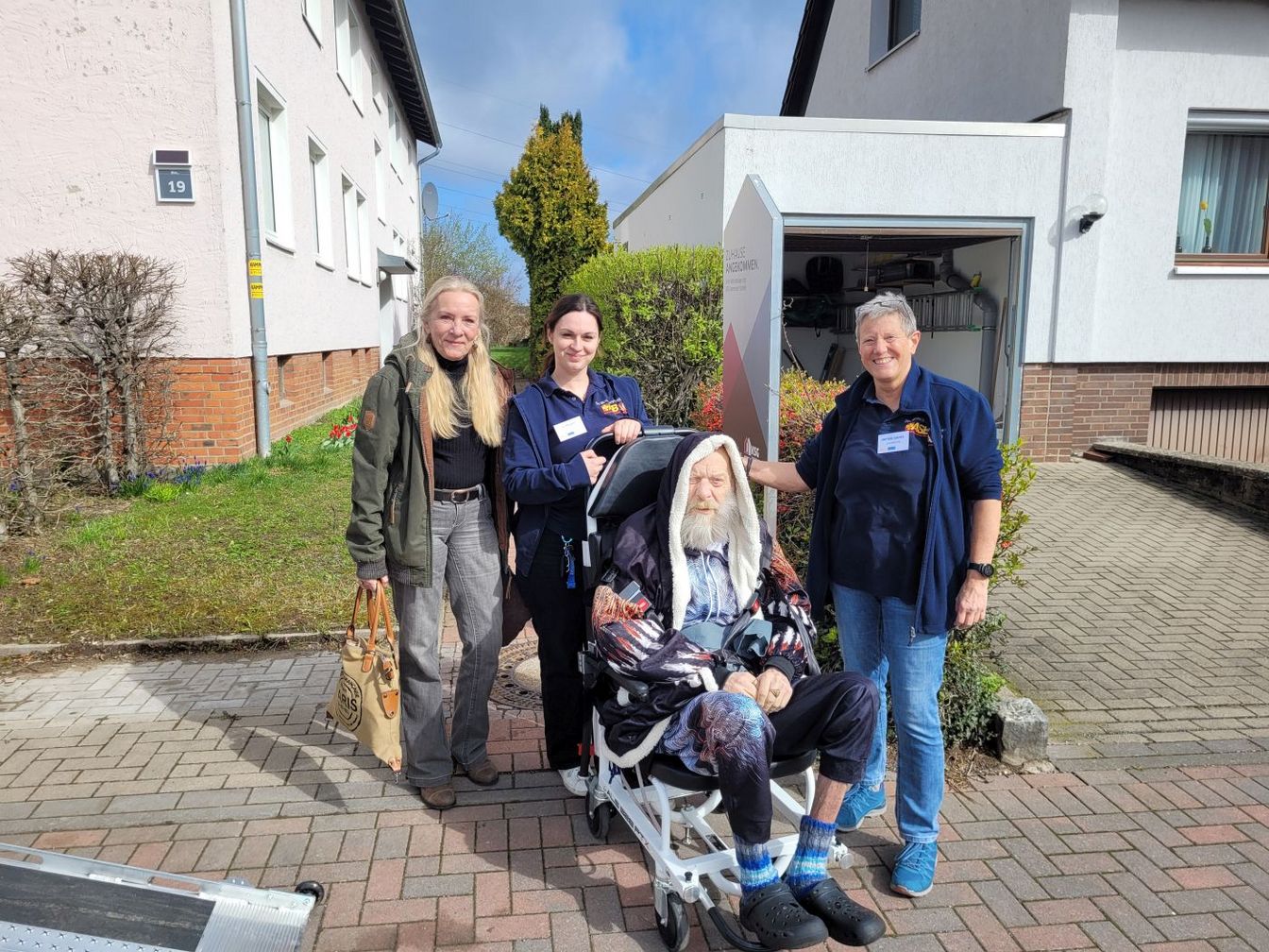 Erst am späten Nachmittag will der ASB-Fahrgast zurück in seine Wohnung. Die Beine machen nicht mehr mit. Das Sitzen fällt schwer. Zum Abschied von den ehrenamtlichen Wunscherfüllerinnen sitzt der Kloß im Hals bei den Geschwistern fest. Sie wissen, dass dies der letzte Ausflug des Palliativpatienten nach draußen war.