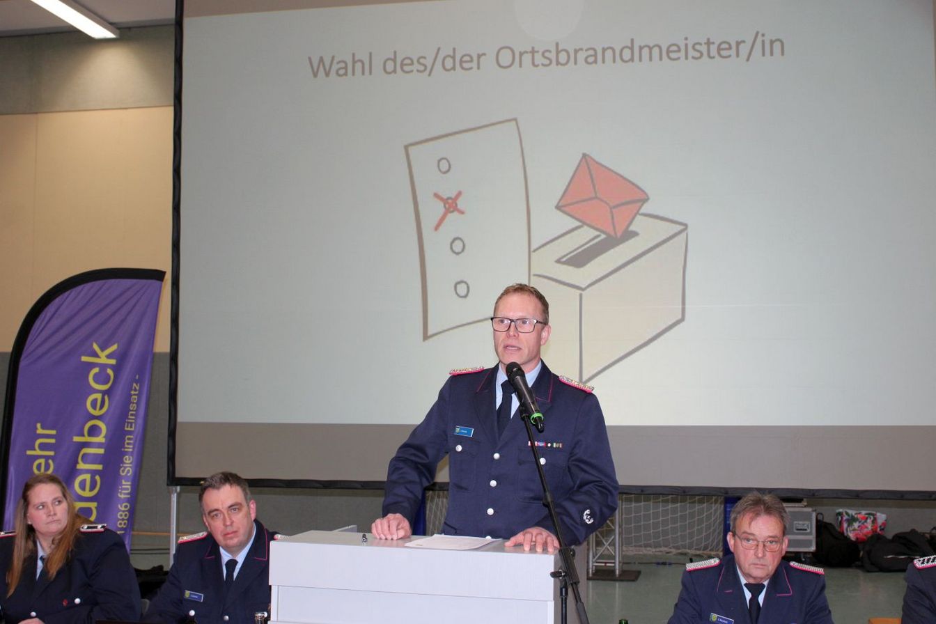 Der neue Gemeindebrandmeister Jörg Ommen stellte sich und seinen Stellvertreter Michael Hirt noch einmal vor. Er ging unter anderem auf die im letzten Jahr eingeführte neue Feuerwehrverordnung ein, die 2027 auch in der Gemeinde umgesetzt werden soll. Dann werden neue Dienstgrade, aber auch neue Uniformen kommen. „Dies zieht aber nicht unerhebliche Kosten mit sich und muss mit der Gemeinde besprochen werden.“