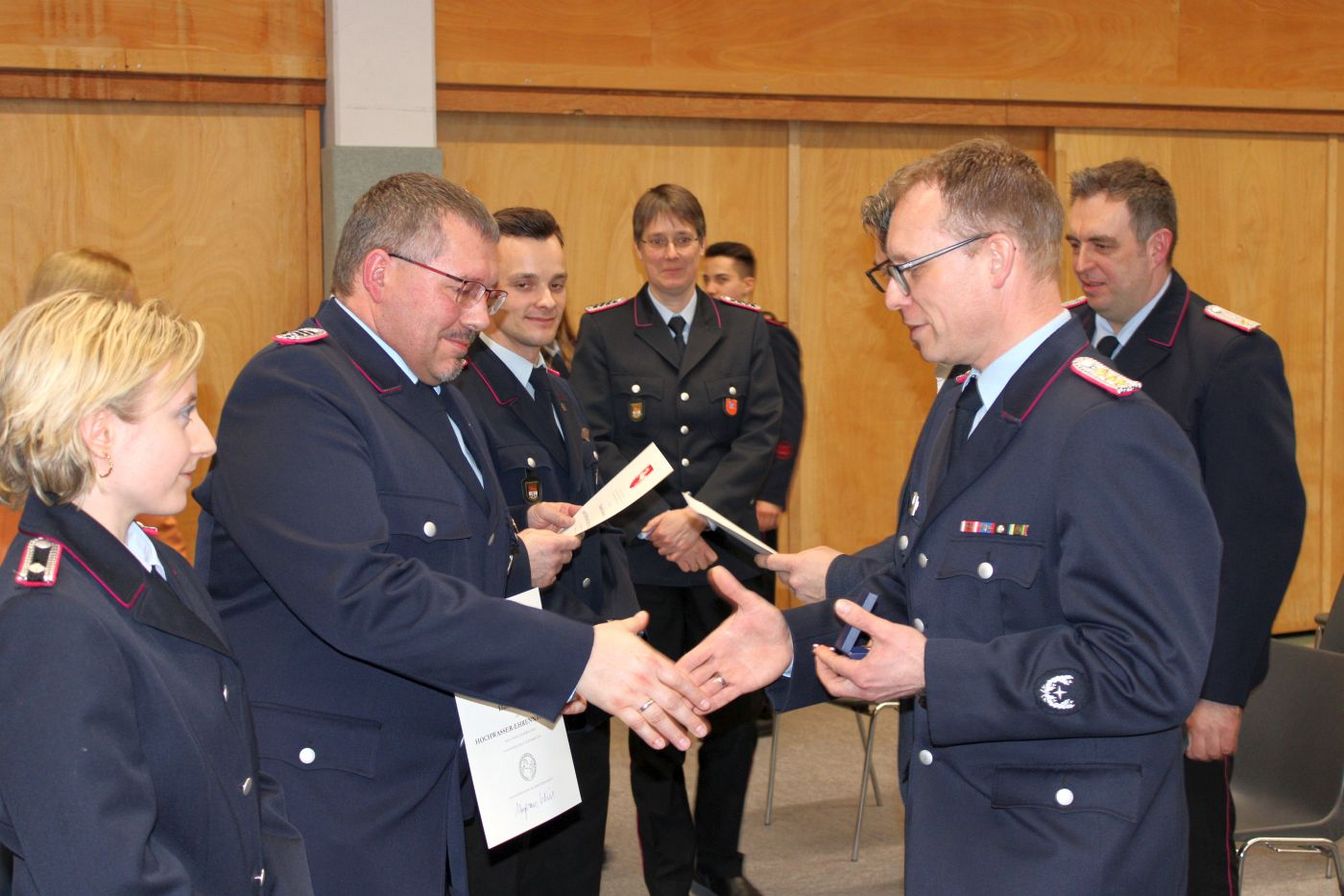 Bürgermeister Ingo Klokemann zeigte sich beeindruckt von den Berichten der Kameraden. „Dies zeigt, wie viel Arbeit in der Feuerwehr steckt und was abseits der Einsätze alles geleistet wird.“ Klokemann lobte die Jugendarbeit und dankte den Kameraden für ihr ehrenamtliches Engagement. In einer Zeit, in der Menschen über Einsamkeit klagten und die Gesellschaft auseinanderzugehen scheine, sei Feuerwehr ein Garant für ein Miteinander und ein lebendiges Ortsleben.