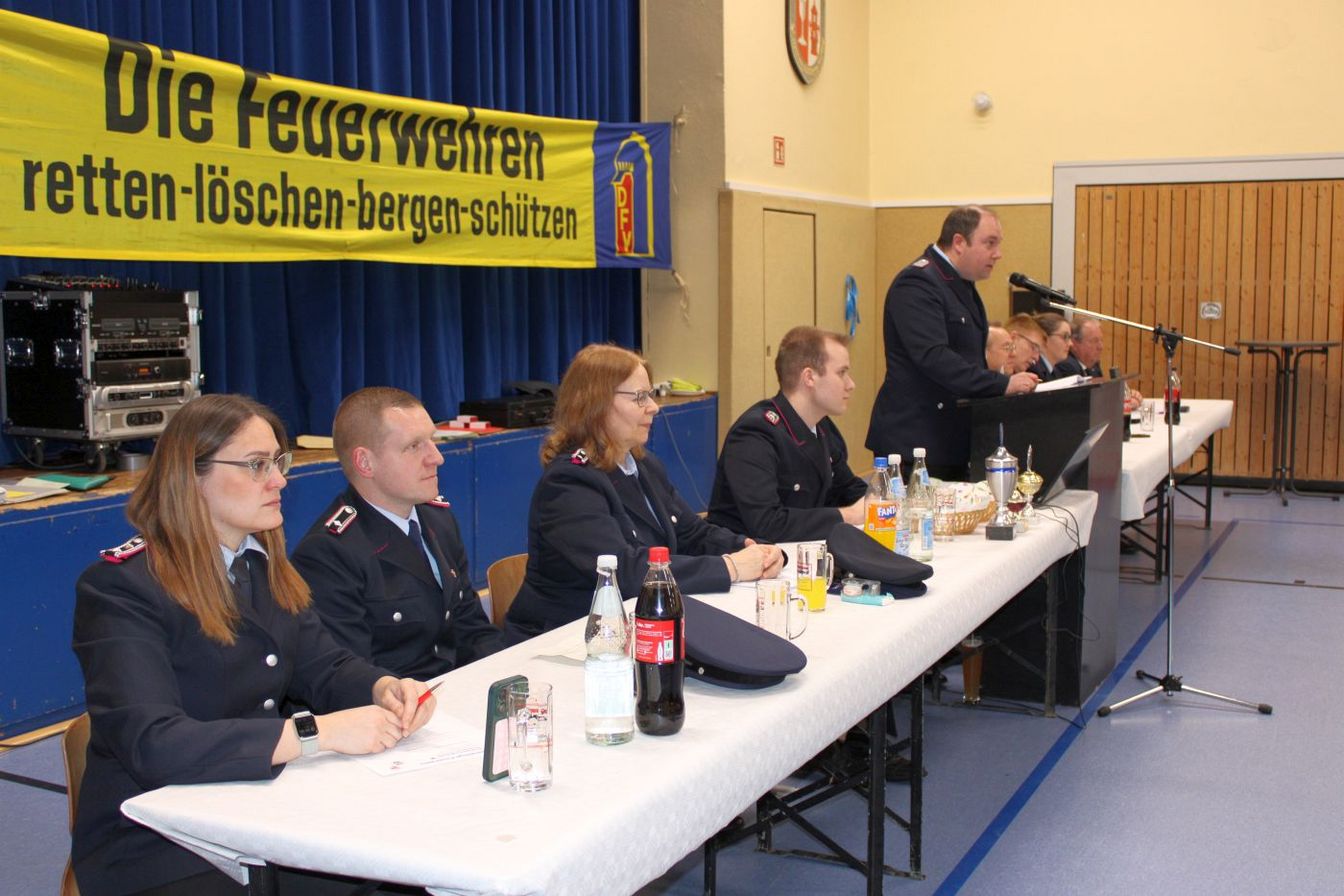 Ein zentraler Punkt der Versammlung waren die Ehrungen für langjährige Mitgliedschaften. Für 25 Jahre Feuerwehrzugehörigkeit wurde Dennis Volkwein geehrt. Im aktiven Bereich erhielten Markus Plackner und Tobias Hielscher die Ehrung für 25 Jahre. Für 40 Jahre Mitgliedschaft wurde Dieter Szot ausgezeichnet, im aktiven Bereich Jörg Trampenau. Auf 50 Jahre Feuerwehrdienst blickt Friedhelm Bock zurück.
