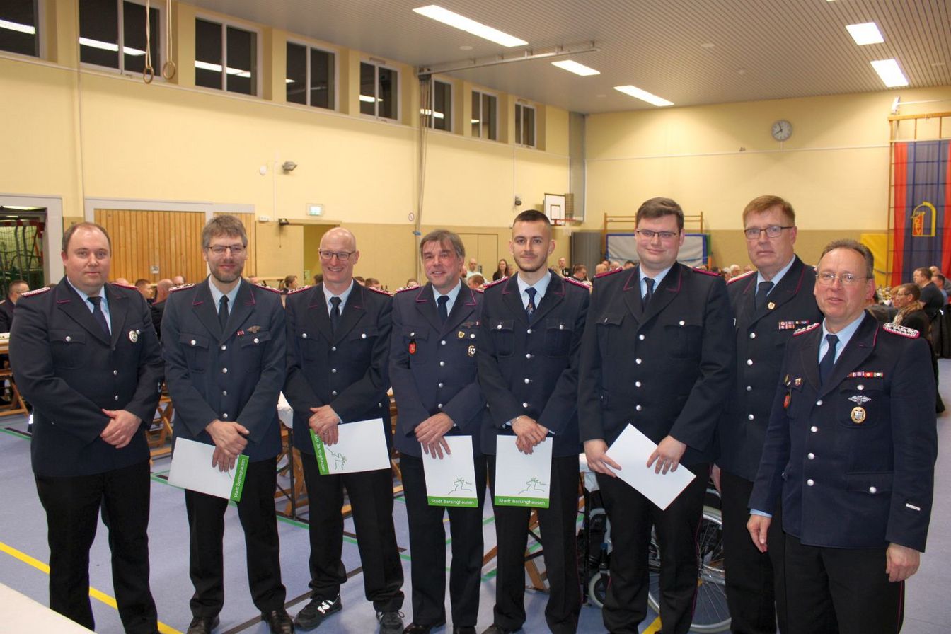 Befördert wurden René Gentzsch zum 1. Hauptfeuerwehrmann und Nils Krügener zum Oberlöschmeister. Kai Wullkopf ist nun Hauptlöschmeister und Robin Voshage Hauptfeuerwehrmann. Björn Georg Matthies wurde zum Feuerwehrmann befördert.