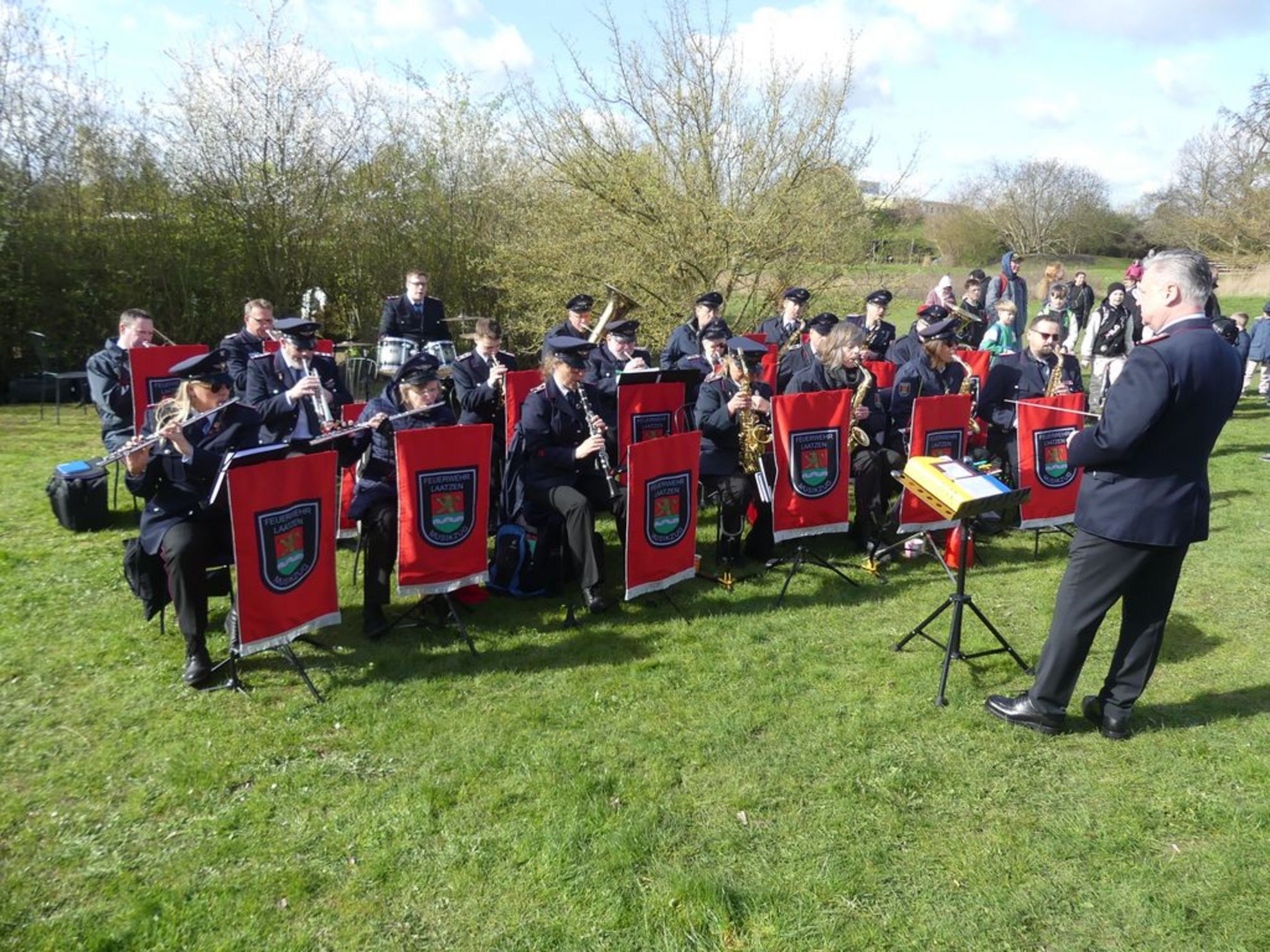 Am Ostermontag ein weiterer großer Auftritt. Zur Saisoneröffnung im Park der Sinne sorgten die Mitglieder nun für musikalische Unterhaltung. Ab 10.30 Uhr, die Osterhasen verteilten gerade die ersten Schokoladeneier an die Kinder, gab es ein Konzert auf der Wiese am Cafe. Über 20 Musiker gaben ihr Bestes und unterhielten die Anwesenden. Nur unterbrochen von den Begrüßungsworten des Bürgermeisters Kai Eggert. Gut eine Stunde dauerte die musikalischen Darbietungen bei herrlichem Sonnenwetter, allerdings hätte es wärmer sein können.