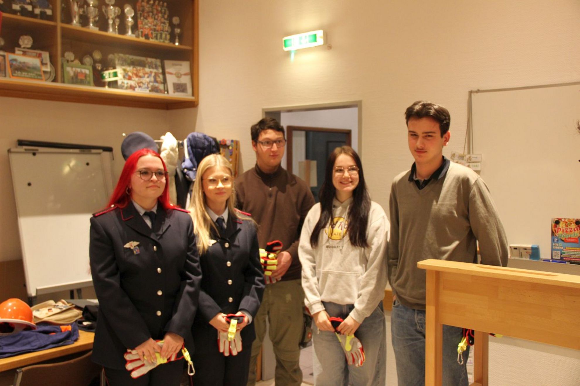 In die Einsatzabteilung verabschiedet: (v.l.n.r.) Josephine Regenhardt, Viktoria Beyer, Luca Wellhausen, Amy Lüdtke und Stefan Meier. Quelle: Freiwillige Feuerwehr der Stadt Pattensen.