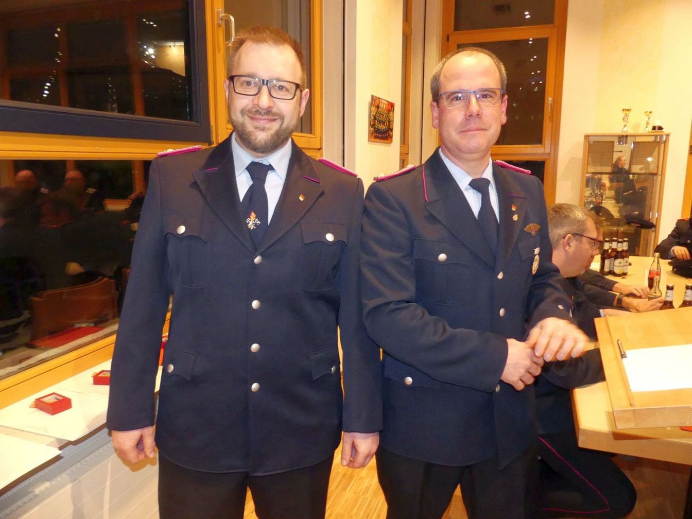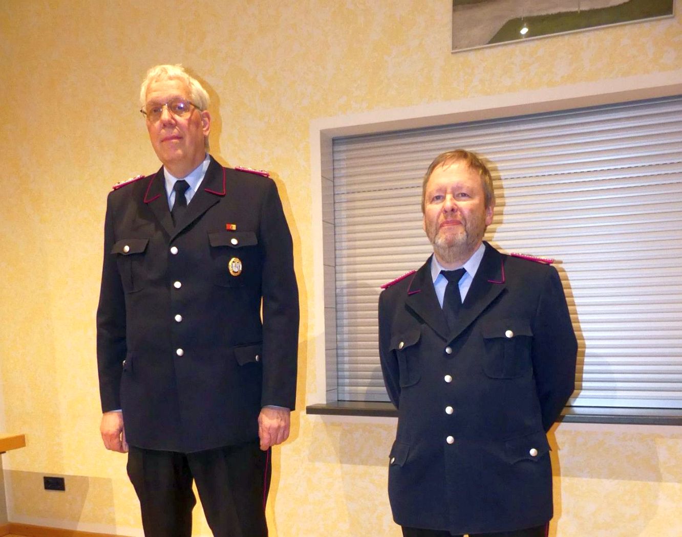 Das Feuerwehr-Ehrenzeichen für langjährige Verdienste erhielten Thorsten Buth für 50 Jahre und Jörg Brandenburg für 25 Jahre Mitgliedschaft.