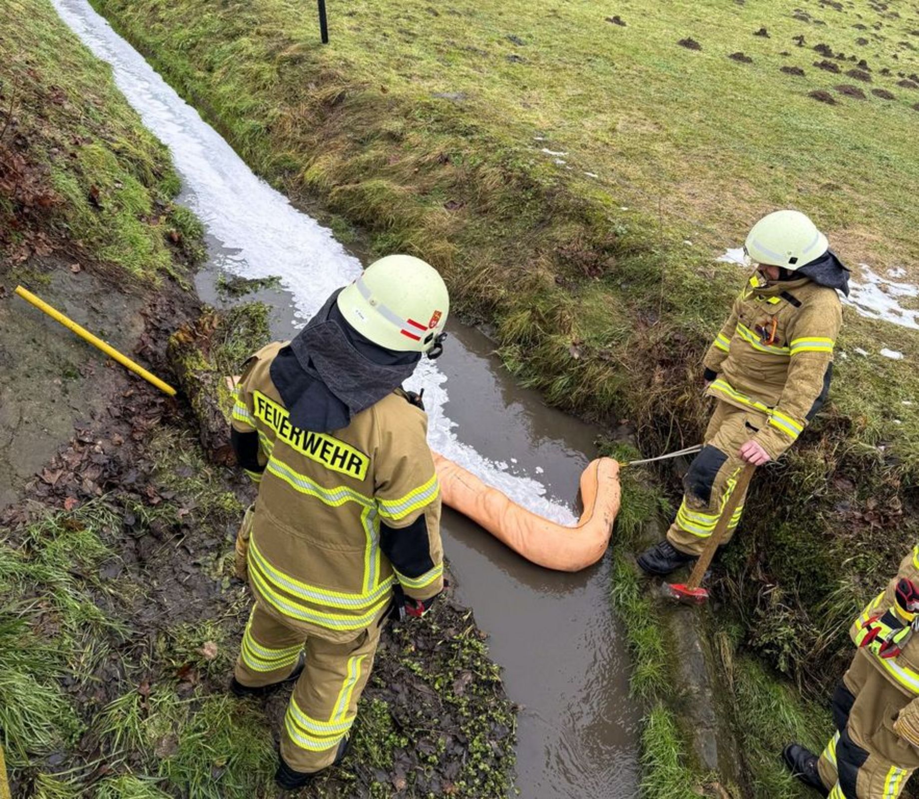Am 11. Februar um 10.45 Uhr waren erneut Einsatzkräfte an der Alvesroder Straße tätig. Gemeinsam mit der Stadt Springe wurden weitere Ölschlängel gesetzt und zusätzliches Gewässerbindemittel ausgebracht. Nach Abschluss dieser Maßnahmen wurde die Einsatzstelle an die Stadt Springe übergeben.