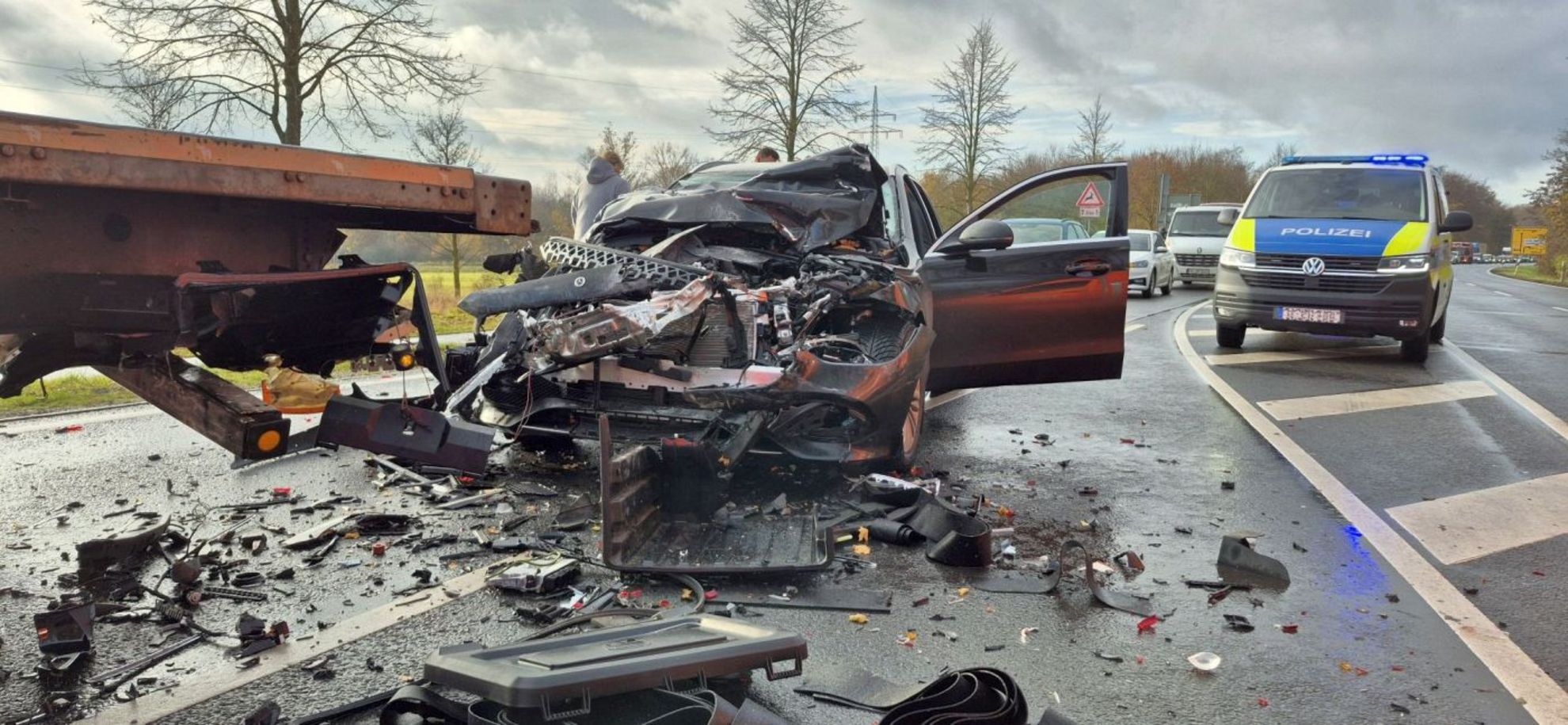 Dort befuhr eine 27-jährige Frau mit ihrer Mercedes C-Klasse die Bundesstraße in Richtung Sehnde und überholte die dort an der Kreuzung wartenden Fahrzeuge. Beim Einscheren krachte die Frau dann in den Plattform-Auflieger eines stehenden Lastkraftwagen und verletzte sich dabei leicht. Durch den Notrufassistenten des Fahrzeugs wurde unverzüglich eine Sprachverbindung mit der Rettungsleitstelle hergestellt, welche wiederum die Rettungskette in Gang setzte.