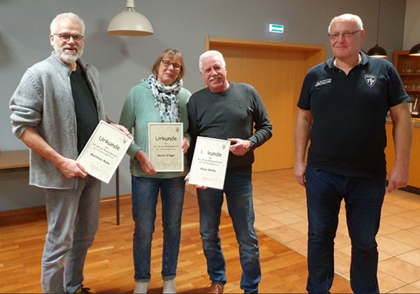 Für 25 Jahre Vereinszugehörigkeit wurden Pascal Bank, Angela Brandt-Köppel, Denis Chemodanow, Benjamin Krüger, Daniel Odin Lattmann, Dennis Lattmann, Nina Reimer und Vitali Teider geehrt. Auf 50 Jahre Mitgliedschaft blicken Sigrid Hielscher, Harald Kleine, Rosi Schröder, Franz Seither, Andreas Weber, Manfred Zeitz und Jutta Zimmermann zurück. Seit 60 Jahren gehören Matthias Bade, Klaus Bothe und Beate Krüger dem Verein an. Zu Ehrenmitgliedern wurden Hannelore Behrendt, Traute Stöcker, Ulrich Bracht, Rüdiger Hogrefe, Astrid Rosahl und Heike Szot ernannt.