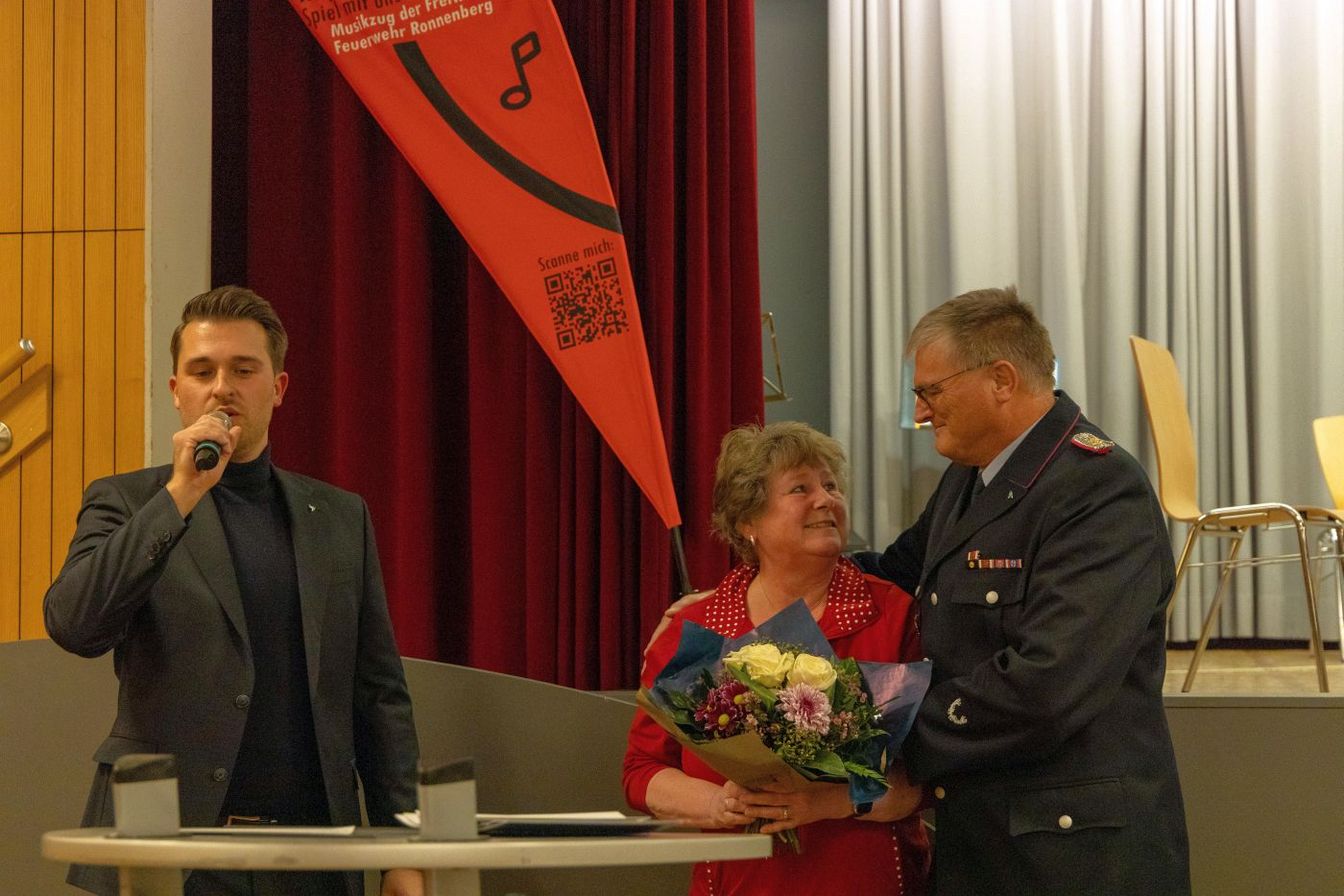 Ein besonderer Moment der Versammlung war die Ehrung von Andreas Keese für seine 30-jährige Amtszeit als Ortsbrandmeister. Bürgermeister Kratzke überreichte ihm eine Urkunde der Stadt Ronnenberg. Auch Keeses Ehefrau Susanne wurde mit einem Blumenstrauß bedacht – als Dank dafür, ihrem Mann über all die Jahre den Rücken freigehalten zu haben.