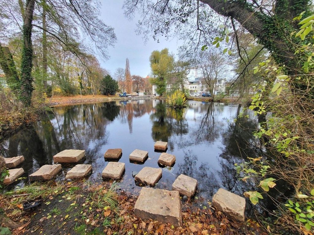 Die Maßnahme umfasste die vollständige Erneuerung der Wegeflächen in Klinker- und Asphaltbauweise. Ein Schwerpunkt lag zudem auf der Sanierung der maroden Ufermauern rund um den Teich. Darüber hinaus wurden gezielte, barrierearme Zugänge zum Wasser geschaffen, um die Aufenthaltsqualität deutlich zu verbessern.