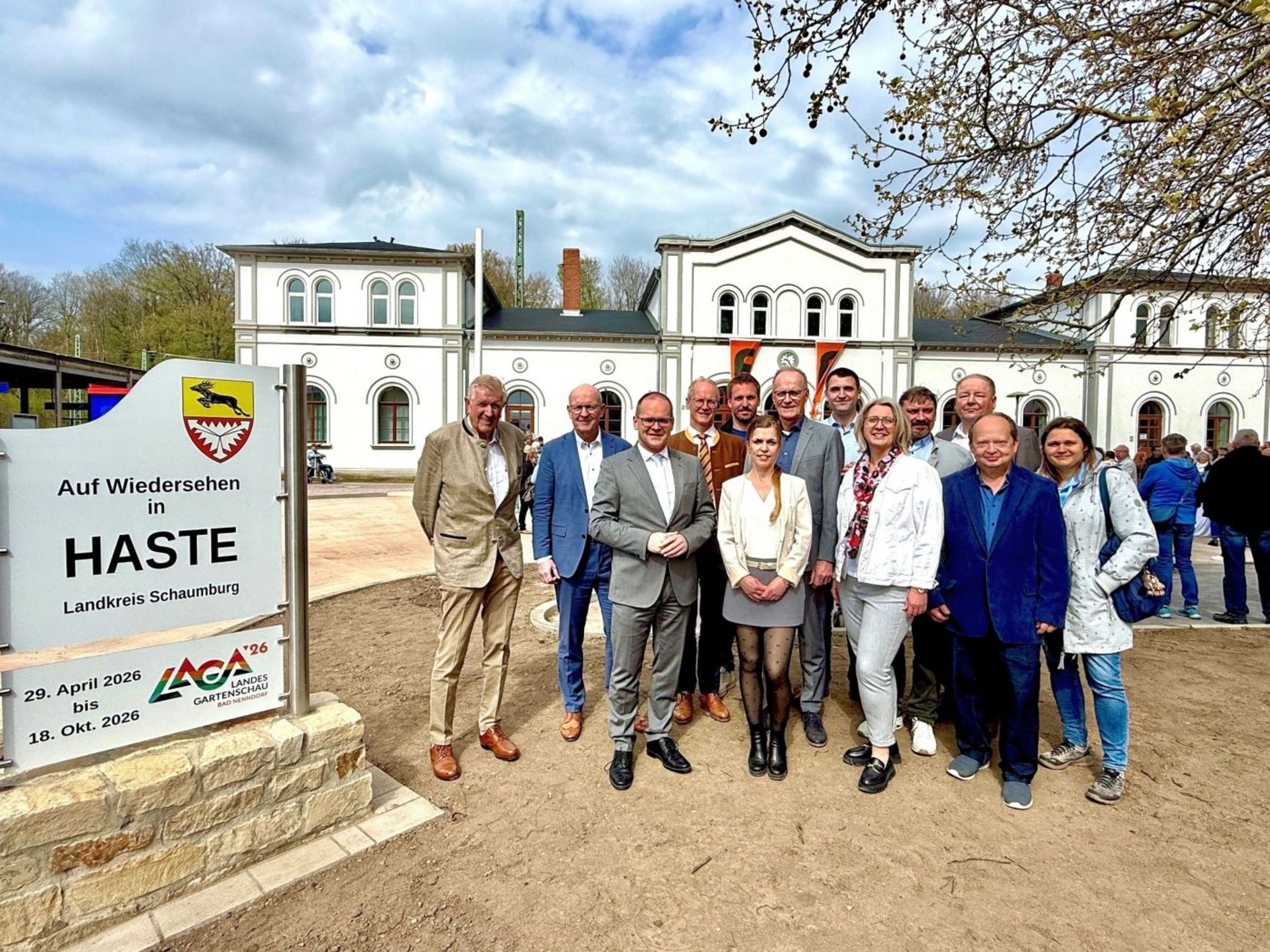 Haste. Nach rund neunmonatiger Bauzeit wurde am Freitag, 17. April, der neu gestaltete Bahnhofsvorplatz mit modernisierter Bushaltestelle in Haste feierlich eröffnet. Zahlreiche Gäste aus Bürgerschaft, Politik, Verwaltung, der Dorfregion „Wir in den Büntedörfern“, Vertreter von Ingenieur- und Planungsbüros sowie Baufirmen nahmen an der Veranstaltung teil.