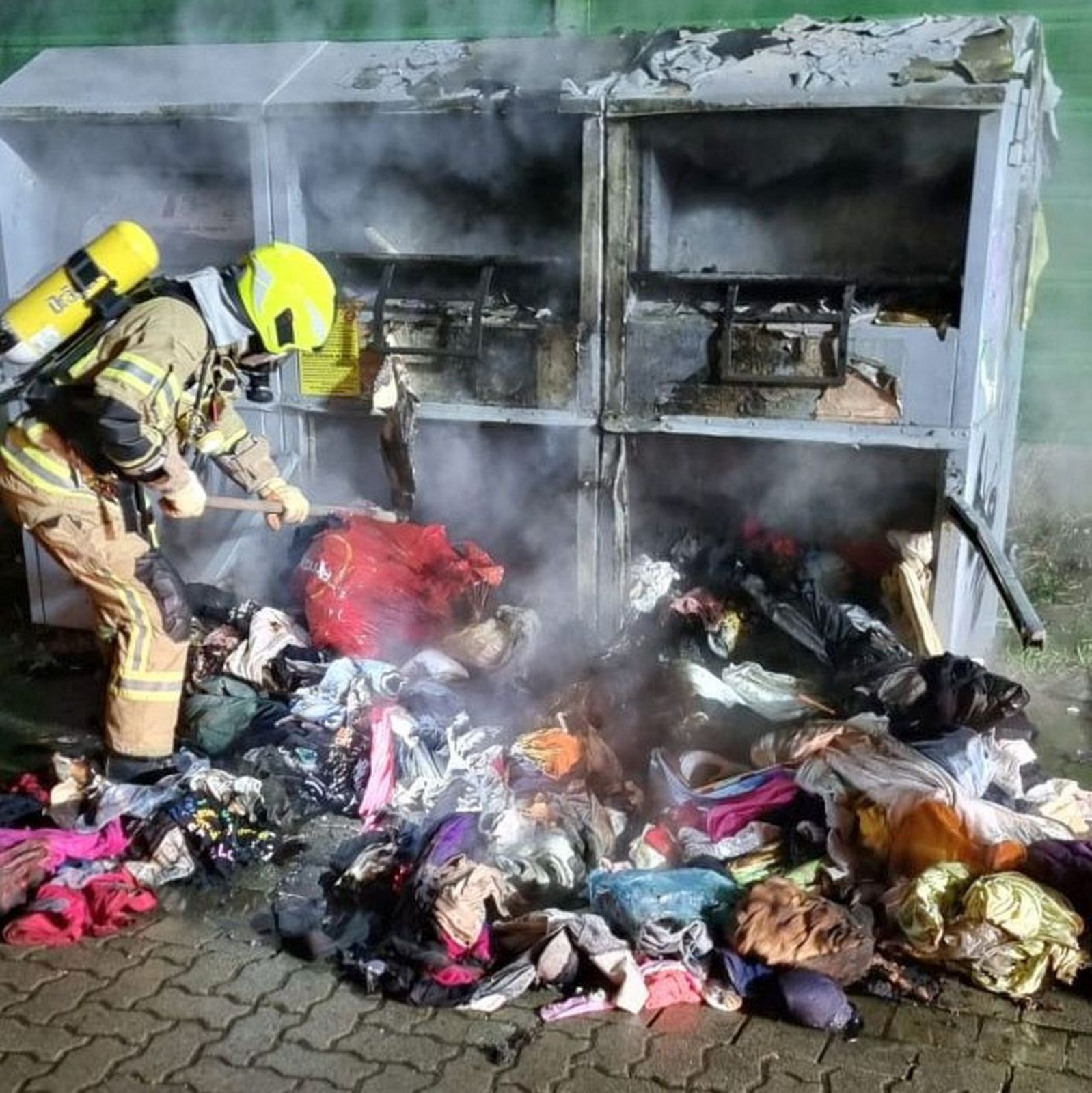 Um 23.55 Uhr verhagelten schließlich brennende Altkleidercontainer den Einsatzkräften der Ortsfeuerwehr Rethen den Jahreswechsel mit ihren Familien. Anwohner meldeten in der Straße Zur Sehlwiese, nahe den Hannoverschen Werkstätten, eine starke Rauchentwicklung. Unverzüglich rückte ein Fahrzeug zur Einsatzstelle aus. Als die Einsatzkräfte eintrafen, standen bereits zwei der drei Behälter in Brand. Ein Trupp unter Atemschutz öffnete gewaltsam die Metallboxen und löschte den brennenden Inhalt mit Wasser ab.