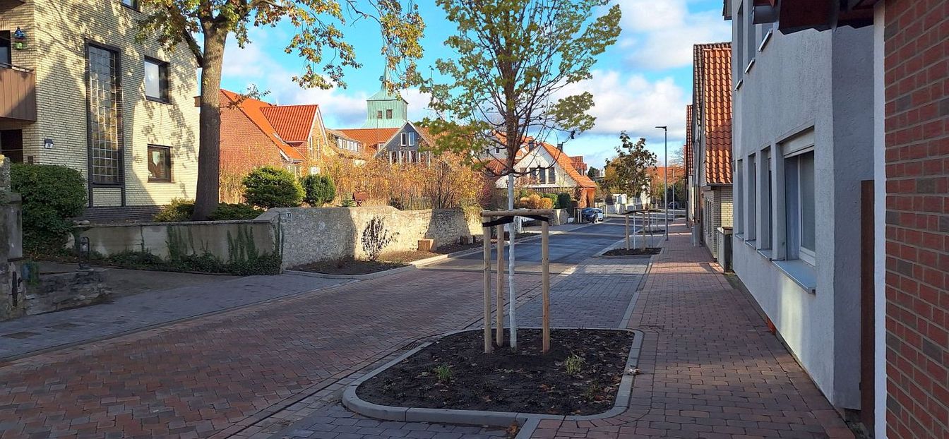 Als Pilotprojekt wurden im Unterbau der Parkplatzstreifen im Sinne des Schwammstadtprinzips Rigolen (Kieskörper) zur Wasserrückhaltung eingebaut. Dadurch wird die Kanalisation entlastet, das Grundwasser mehr gespeist und die Straßenbäume besser mit Wasser versorgt. Auch neu im Stadtgebiet: im Straßenverlauf werden zwei Straßenlaternen mit sogenannten Laderucksäcken ausgestattet, so dass zukünftig Elektrofahrzeuge auch in der Straße geladen werden können. Durch die Übernahme von Pflegepatenschaften für einen Teil der neu zu bepflanzenden Baumscheiben, ist durch die Aufnahme auch pflegeintensiverer Rosenflächen das Erscheinungsbild der Pflanzungen abwechslungsreich. Die Stadt Springe bedankt sich herzlich für das Engagement der Anliegerinnen und Anlieger.